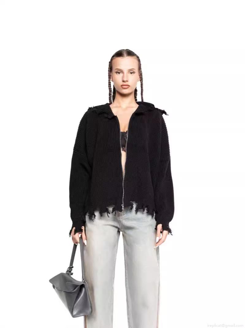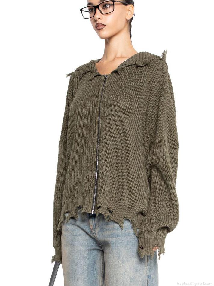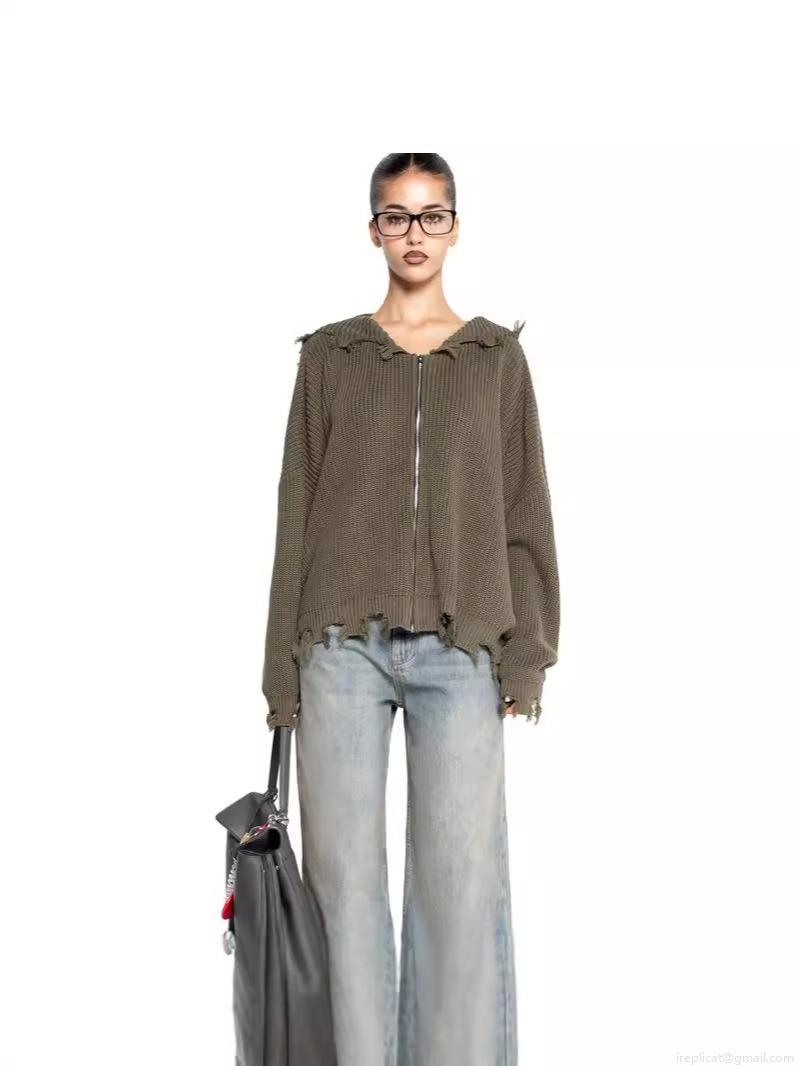 • Women's Distressed Knit Hooded Sweater Cardigan Cotton Blend Oversized Zip Up Jacket With Fringed Edges Streetwear Autumn Winter Long Sleeve Top