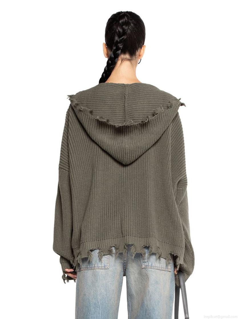Women's Distressed Knit Hooded Sweater Cardigan Cotton Blend Oversized Zip Up Jacket With Fringed Edges Streetwear Autumn Winter Long Sleeve Top
