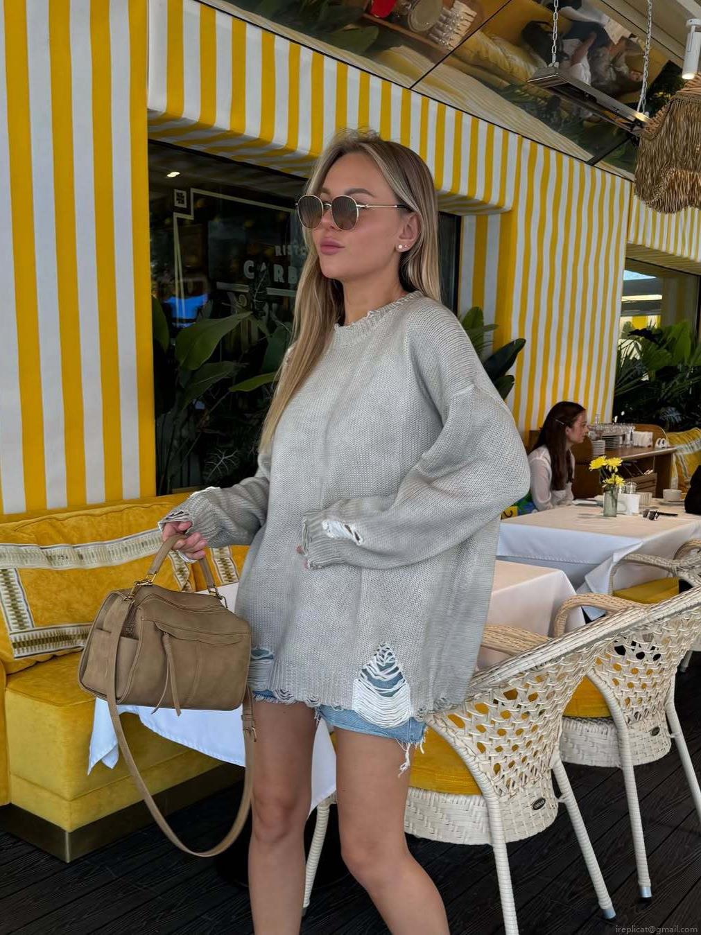• Women's Distressed Oversized Sweater Cotton Blend Knit Ripped Holes Long Sleeve Crew Neck Streetwear Casual Grunge Style Pullover Knitwear