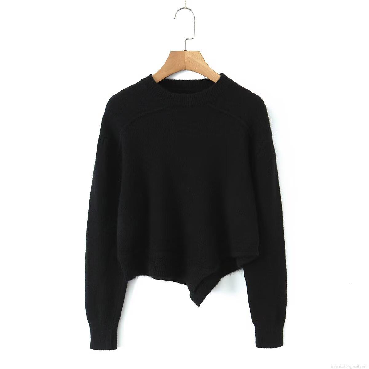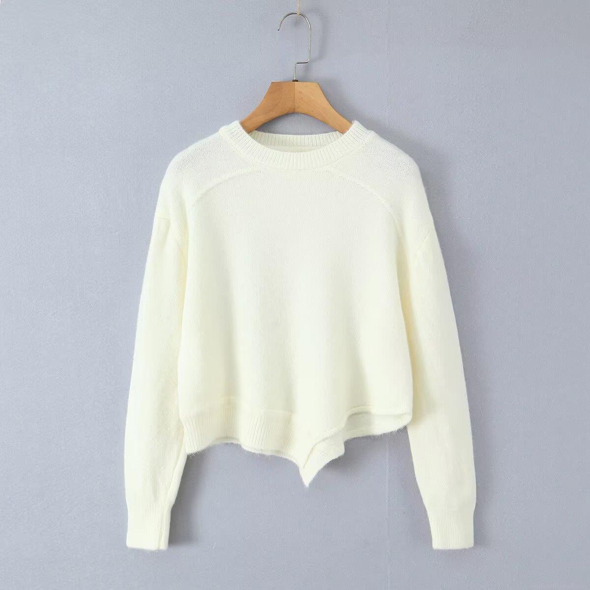 Solid Color, Irregular Hem, Asymmetrical Design, Knitted Texture
