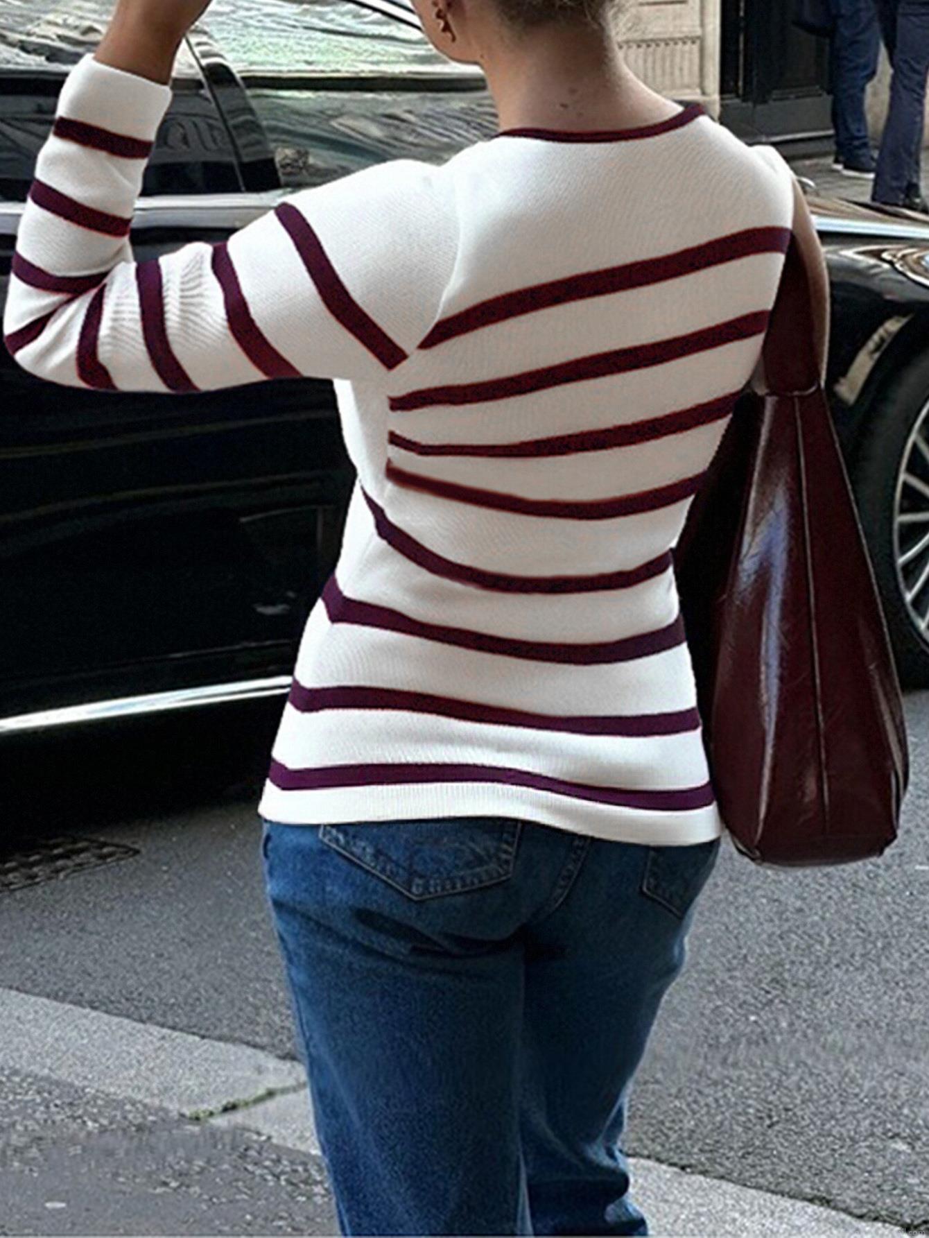 Stripe, Color Blocking, Horizontal Stripes, Button Decoration