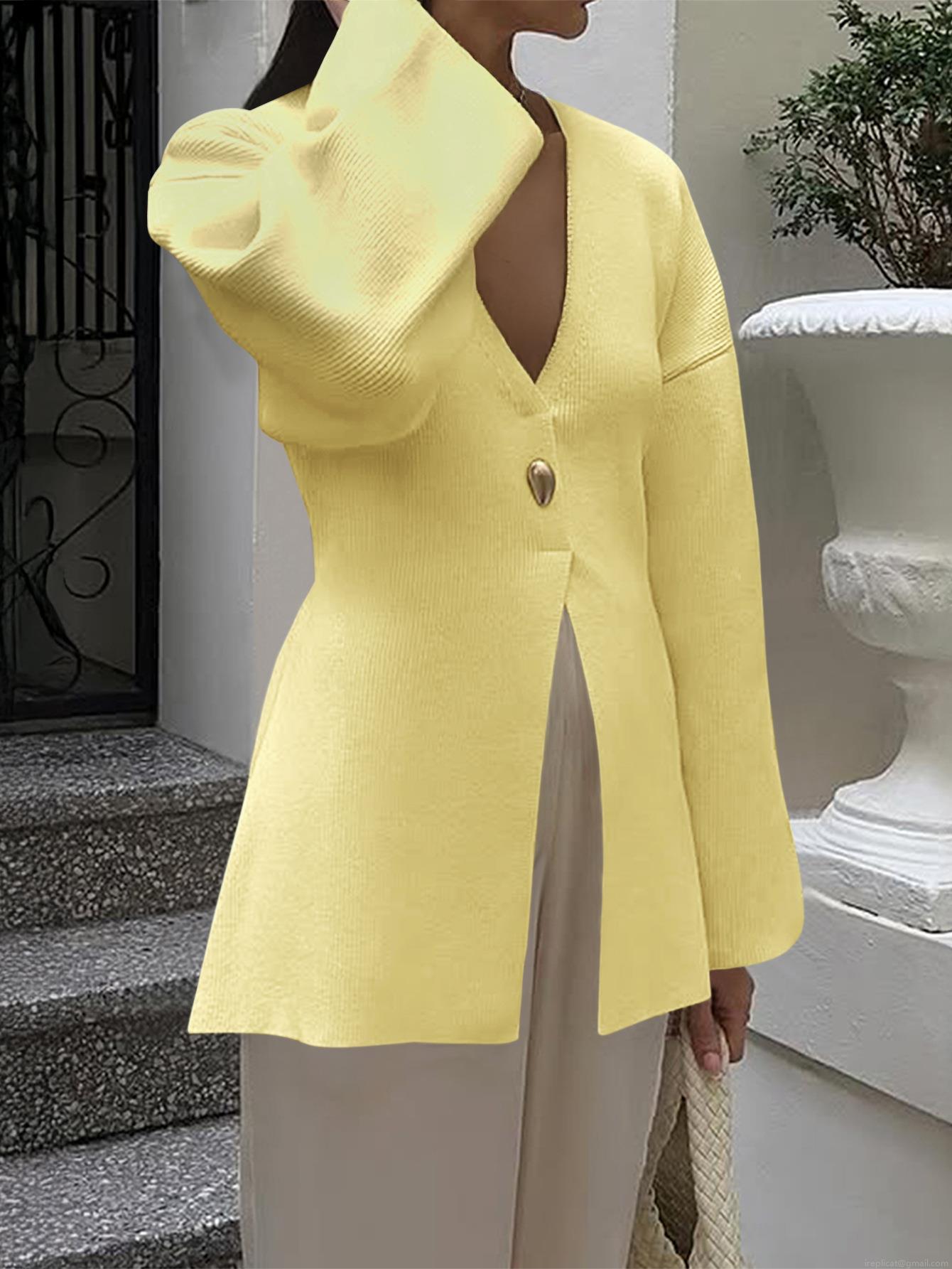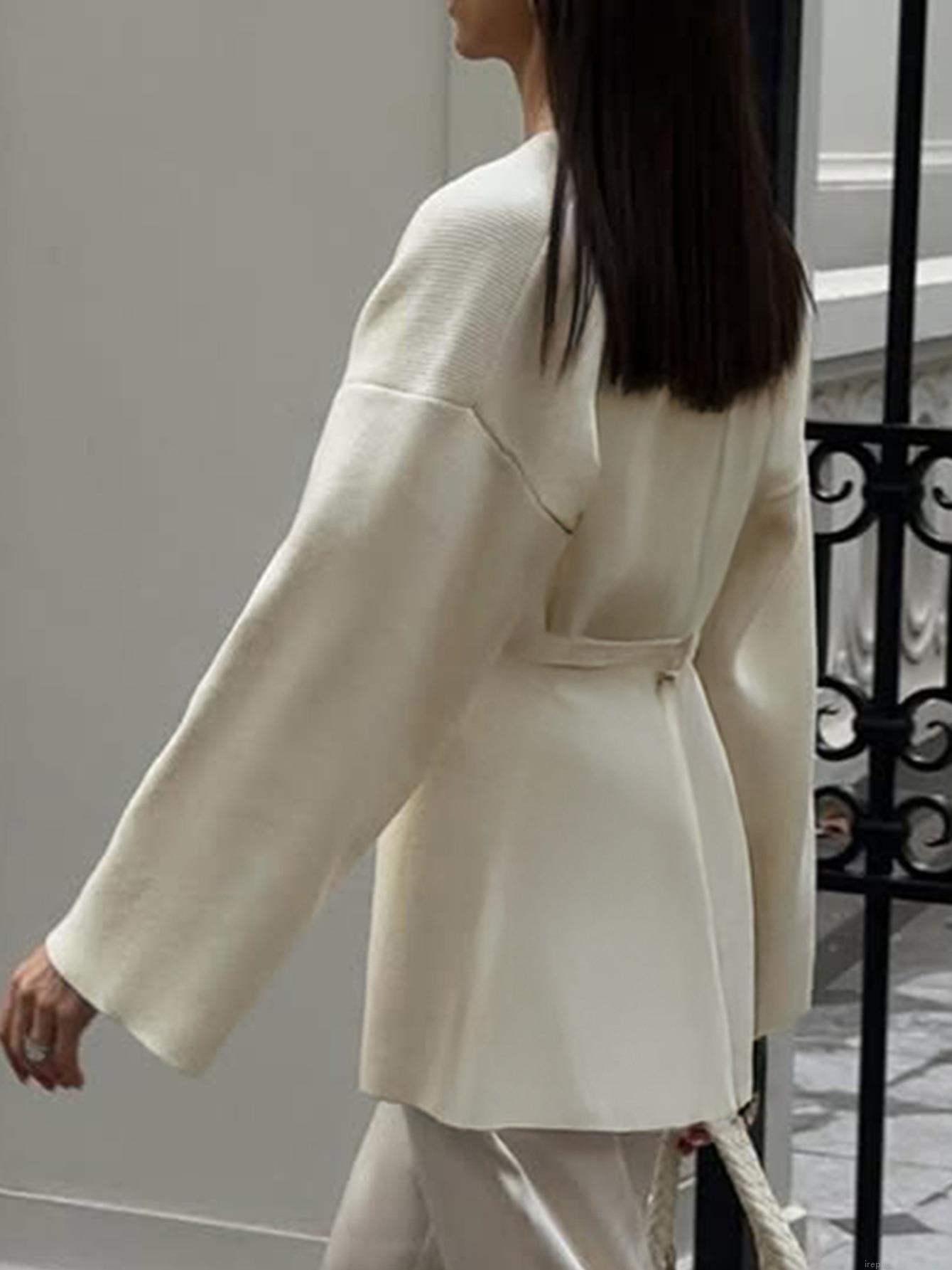 • Women's Elegant V Neck Single Button Cardigan Sweater Viscose Blend Knit Long Sleeve Ribbed Top With Belt For Casual Office Daily Wear