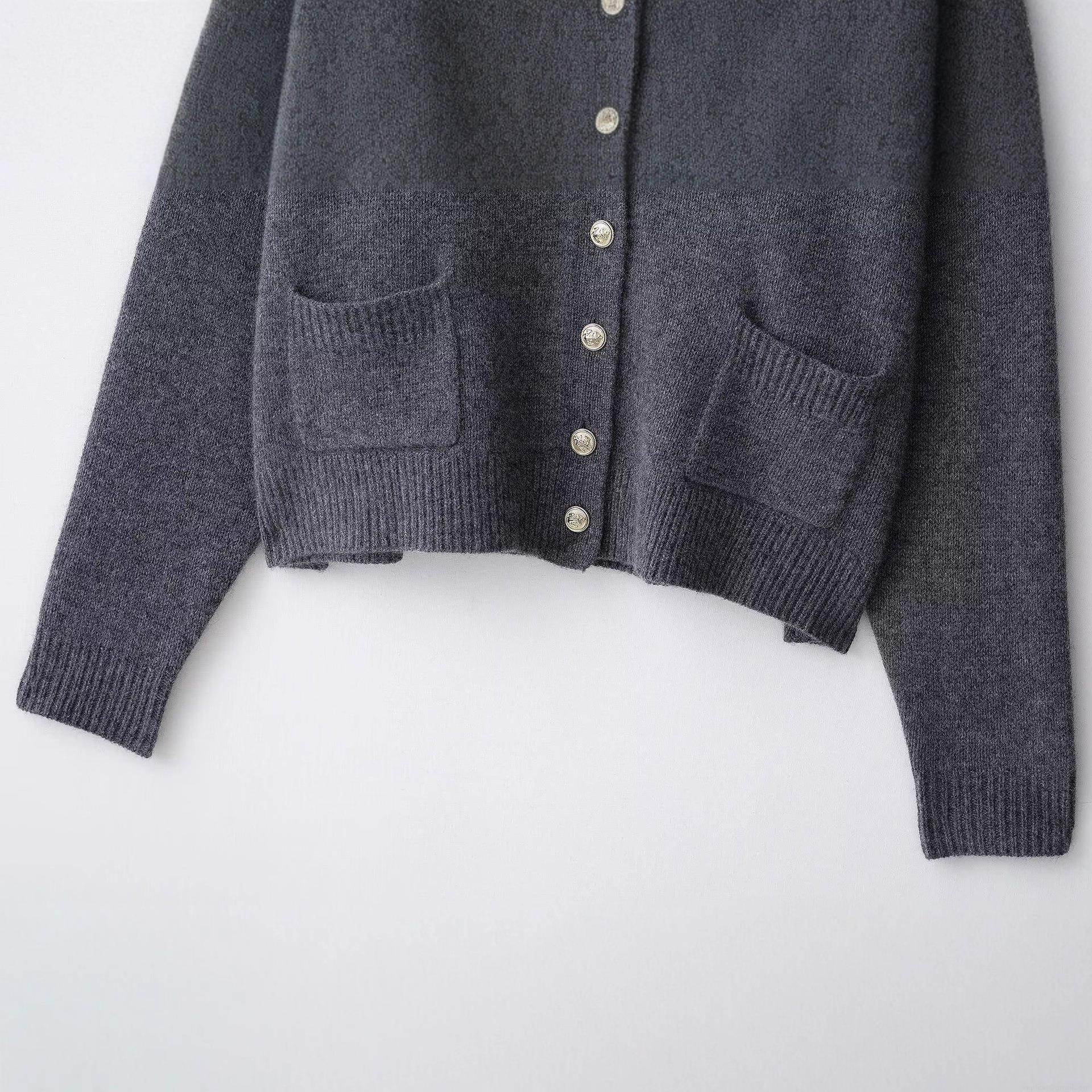 • Women's Elegant V-Neck Knit Cardigan Sweater With Gold Buttons Solid Color Long Sleeve Ribbed Trim Knitwear Jacket For Daily Casual Wear Office Lady