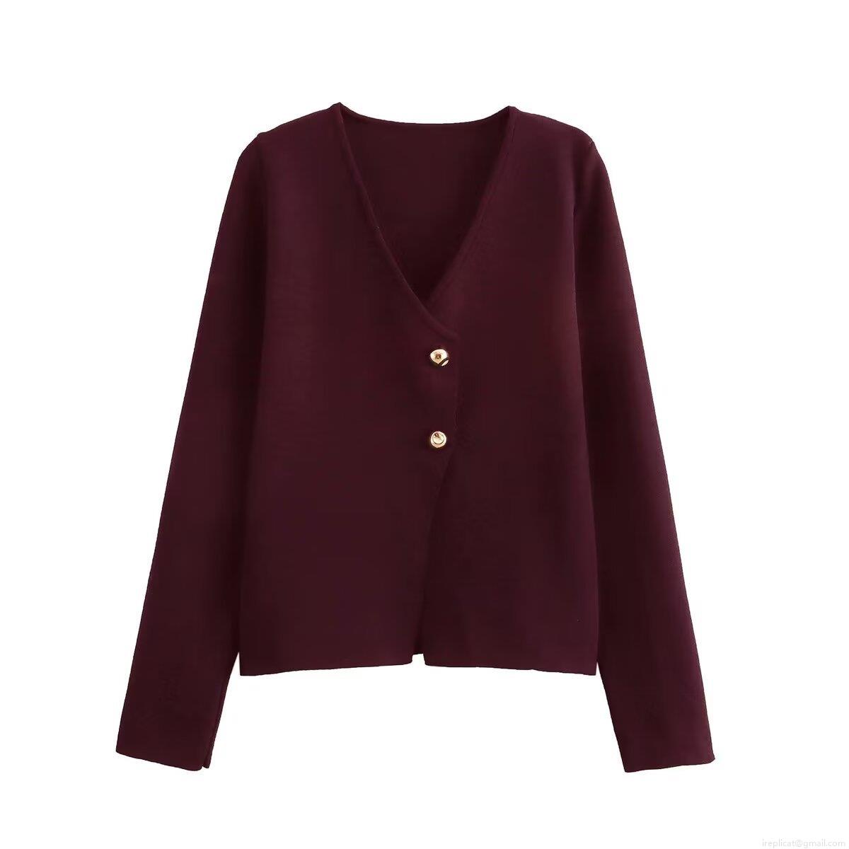 Solid Color, V-neck, Metal Buttons, Gold Button