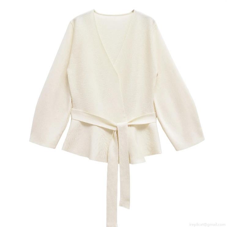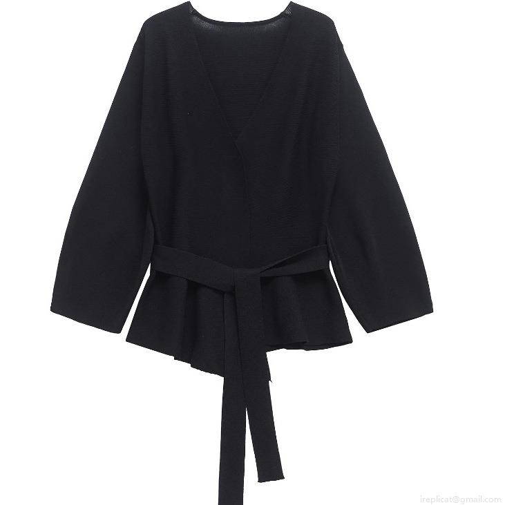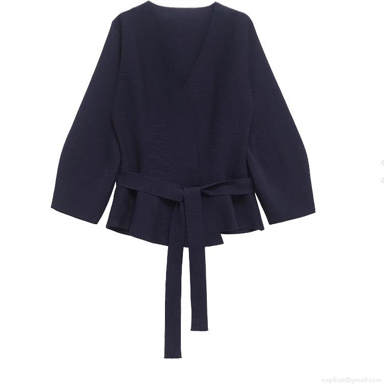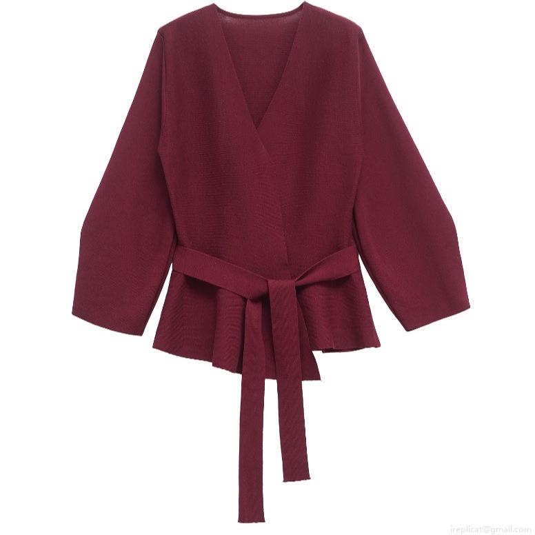 • Women's Elegant V-Neck Wrap Knit Top Long Sleeve Peplum Sweater With Belt Slim Fit Solid Color Polyester Cardigan For Daily Casual Office Party