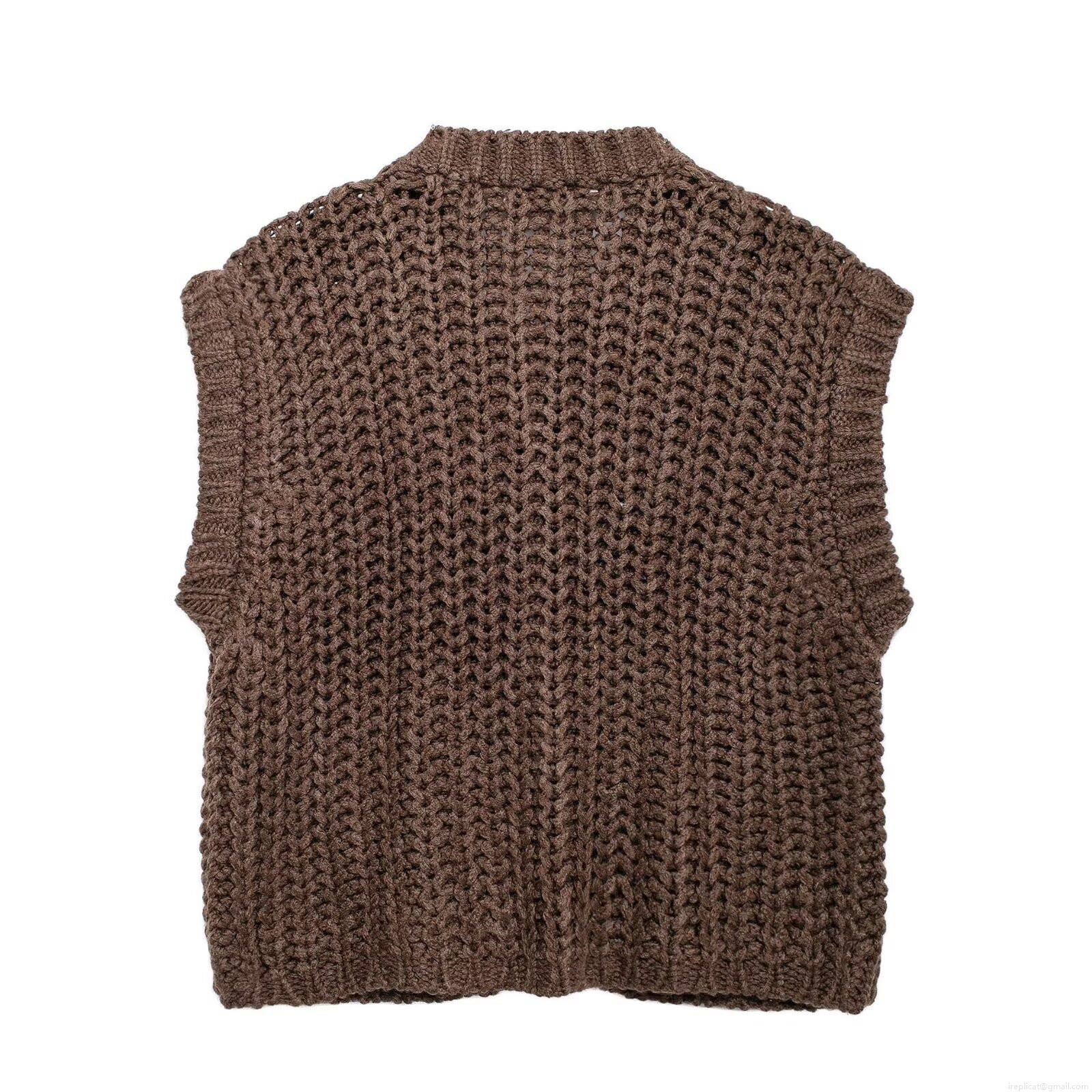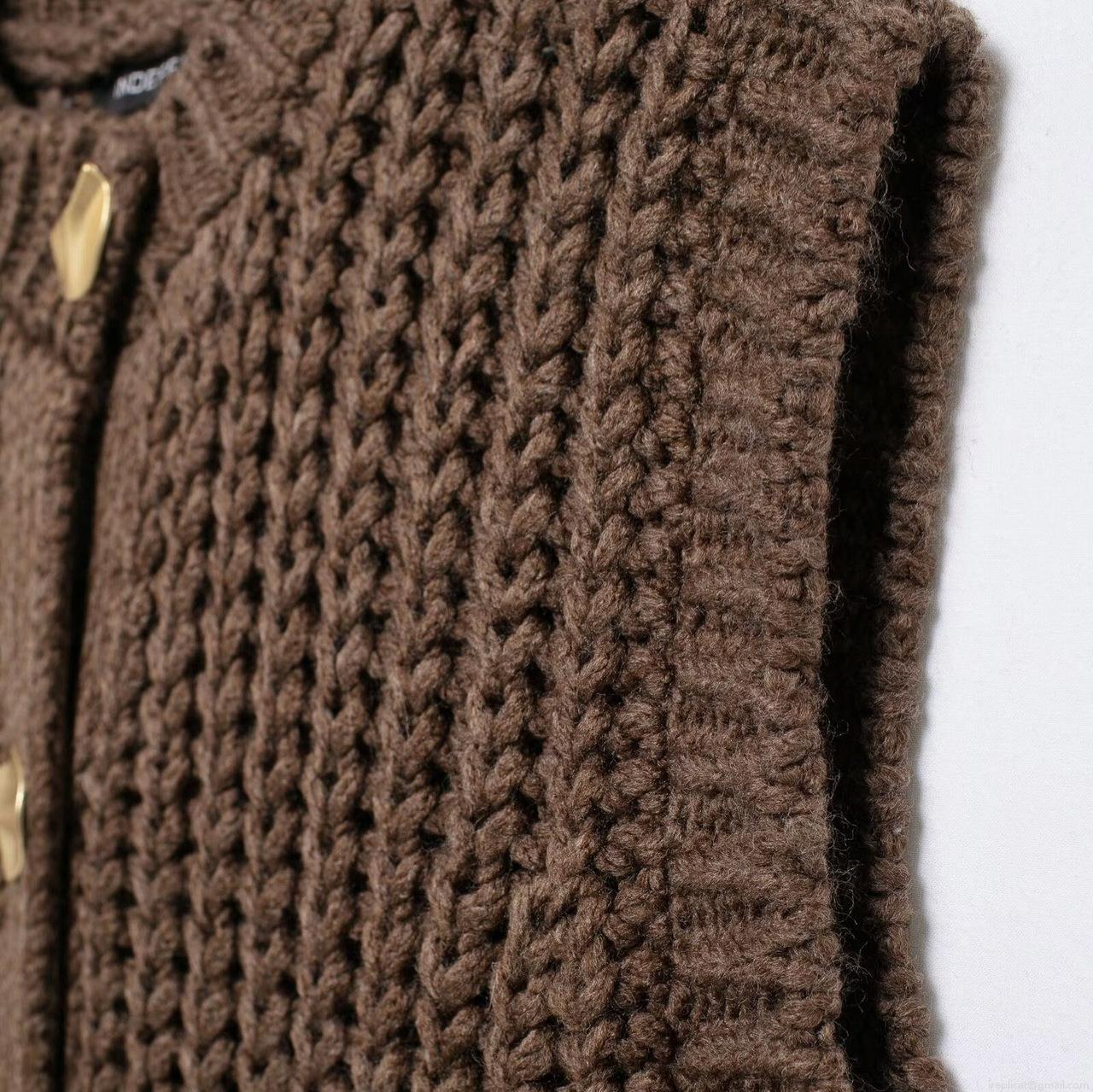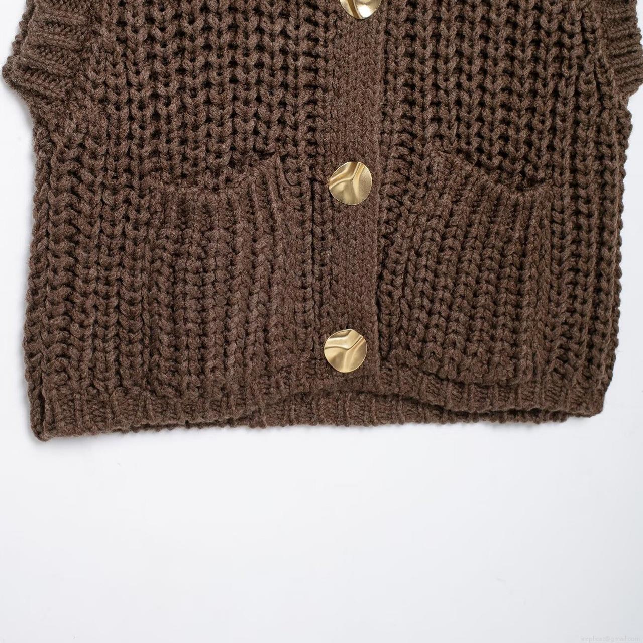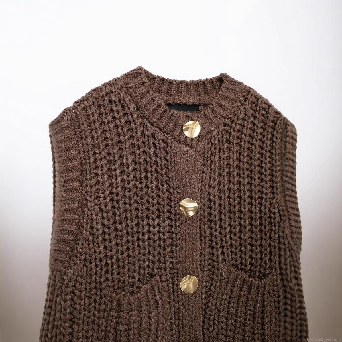• Women's Fashion Chunky Knit Vest Solid Color Sleeveless Open Front Cardigan With Gold Buttons Casual Loose Waistcoat Streetwear For Ladies Spring Autumn