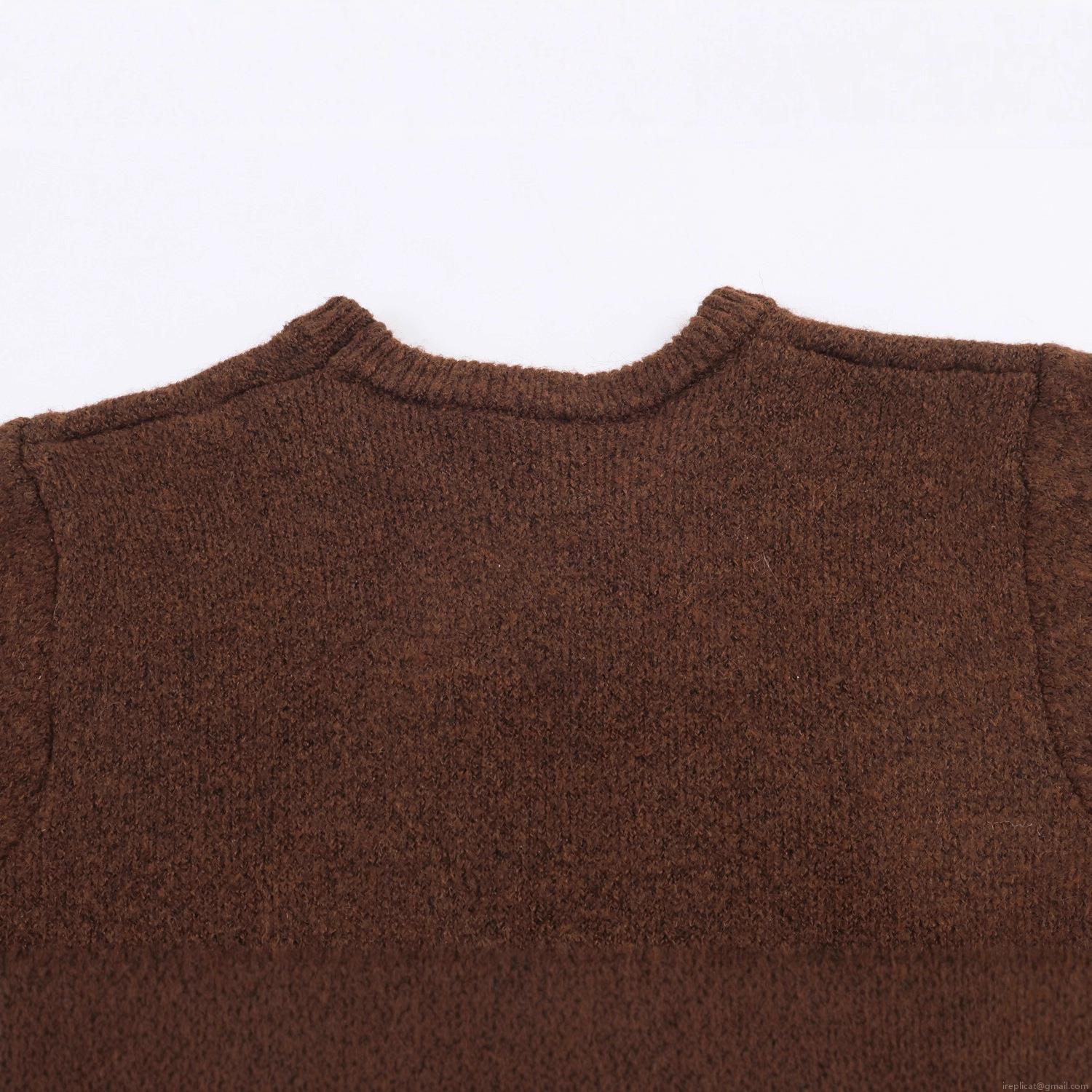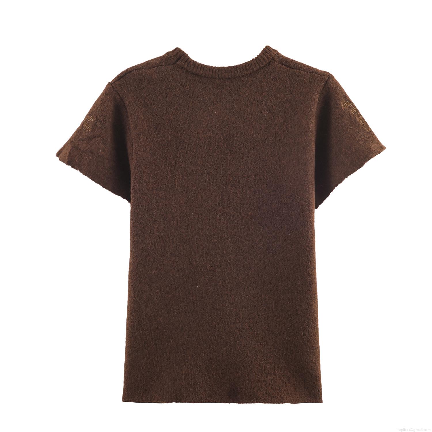 • Women's Fashion Coffee Brown Short Sleeve Knit Sweater With Floral Embroidery Round Neck Pullover Polyester Top For Autumn Casual Daily Wear