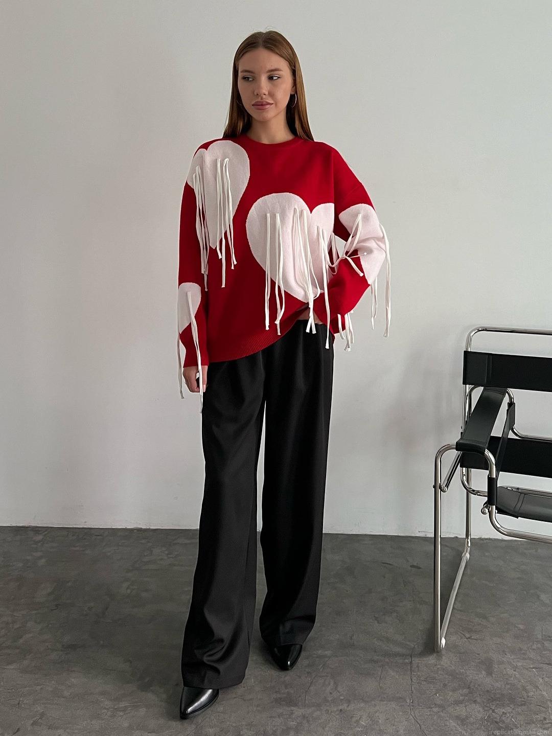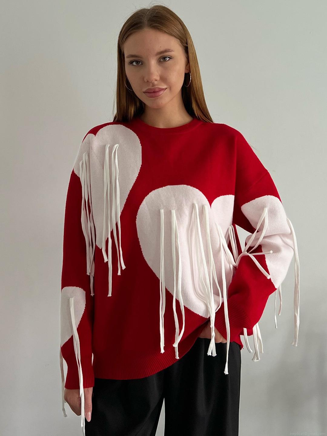 • Women's Fashion Heart Pattern Knit Sweater Color Block Long Sleeve Crew Neck Pullover With Tassel Fringed Casual Autumn Winter Slim Fit Knitwear Tops