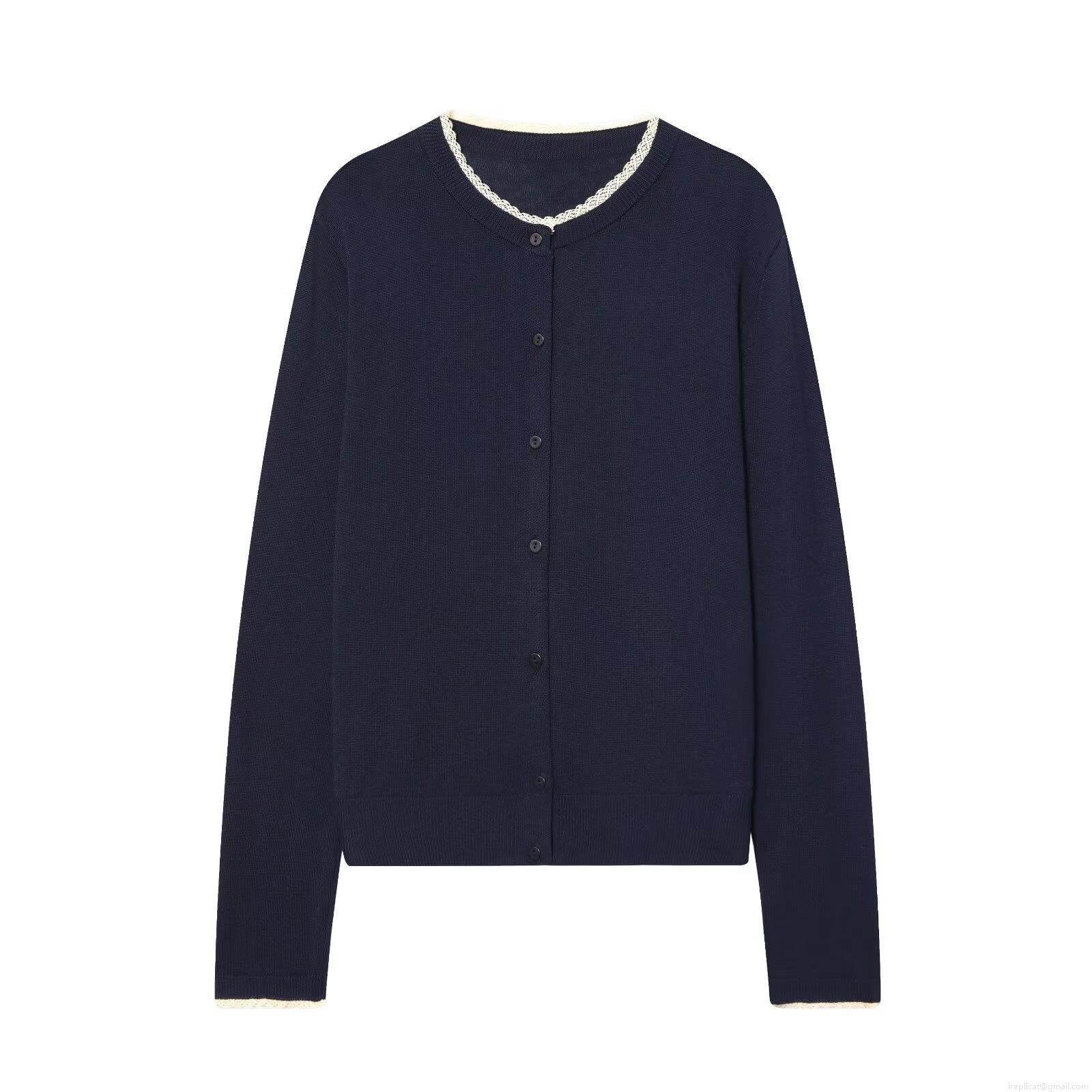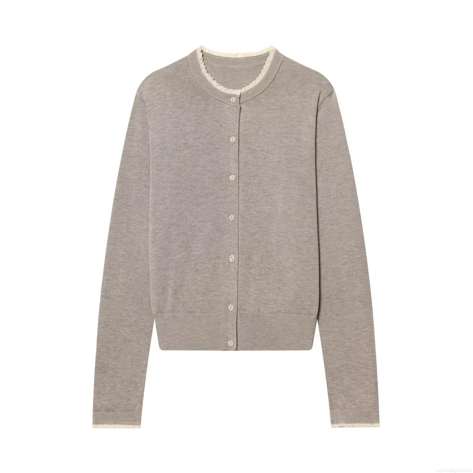 • Women's Fashion Lace Trim Knit Cardigan Single-Breasted Long Sleeve Round Neck Cotton Blend Sweater Top Spring Autumn Casual Outerwear Clothing