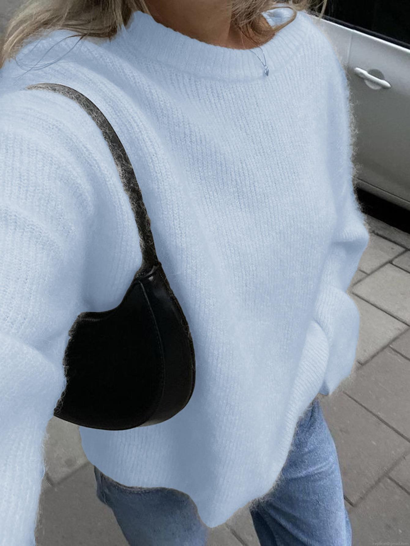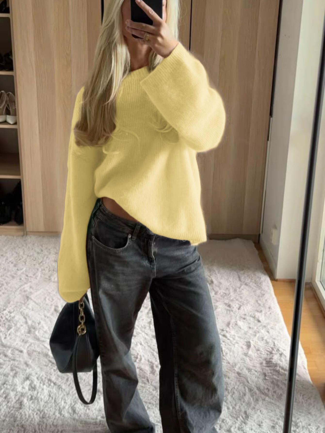 • Women's Fashion Off Shoulder Knit Sweater Solid Color Loose Fit Crew Neck Long Sleeve Pullover Soft Acrylic Polyamide Wool Blend Jumper Tops