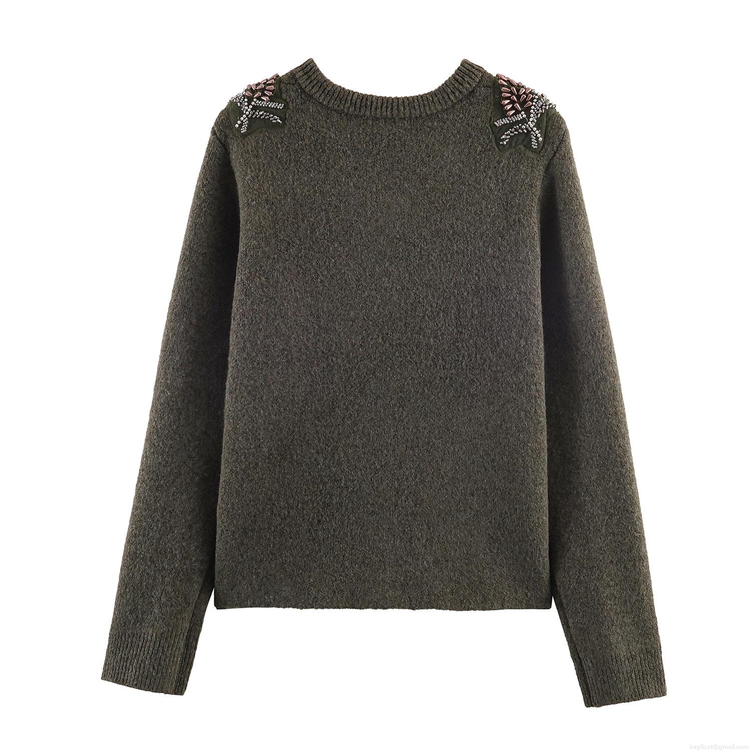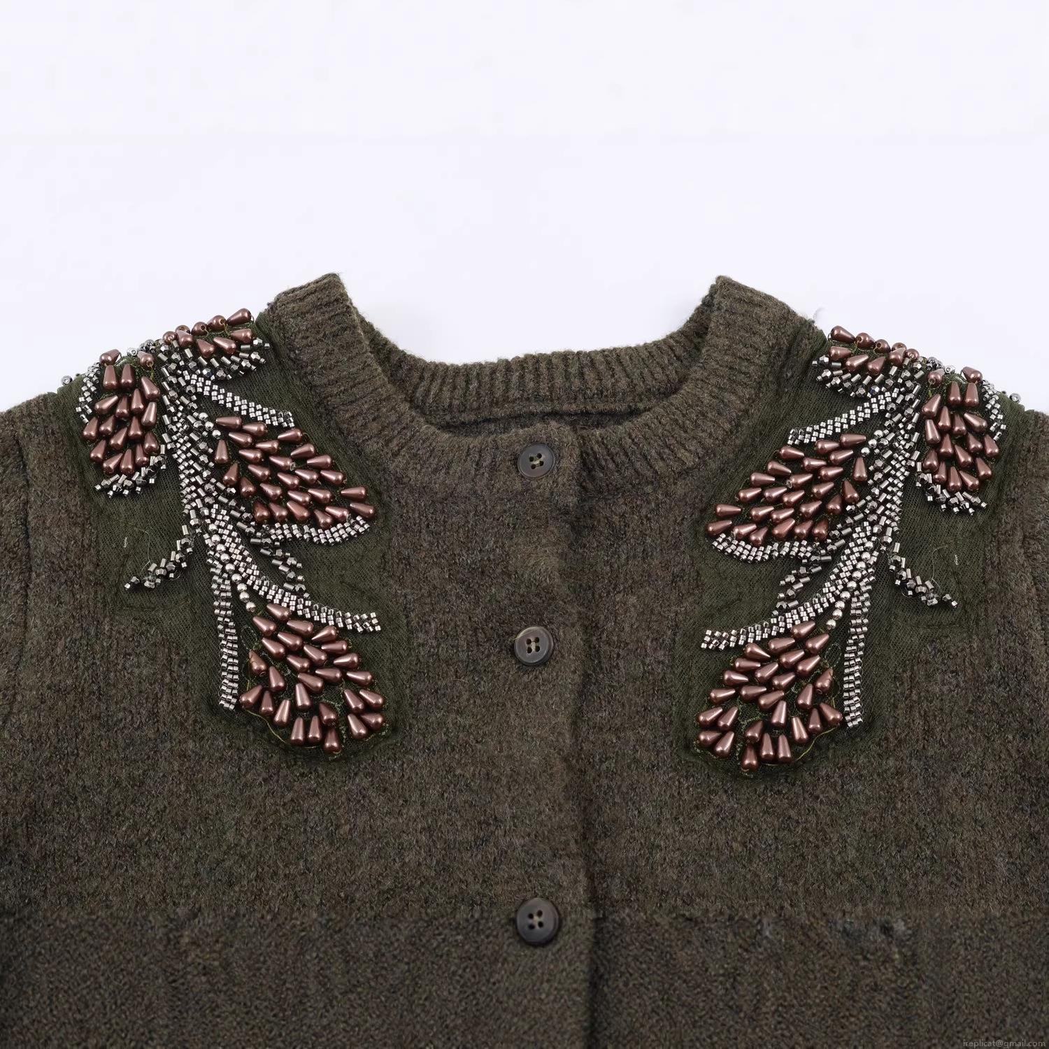 • Women's Fashion Round Neck Knit Cardigan Jacket Hand-Beaded Leaf Patterns Cotton Blend Loose Long Sleeve Sweater Outerwear Streetwear