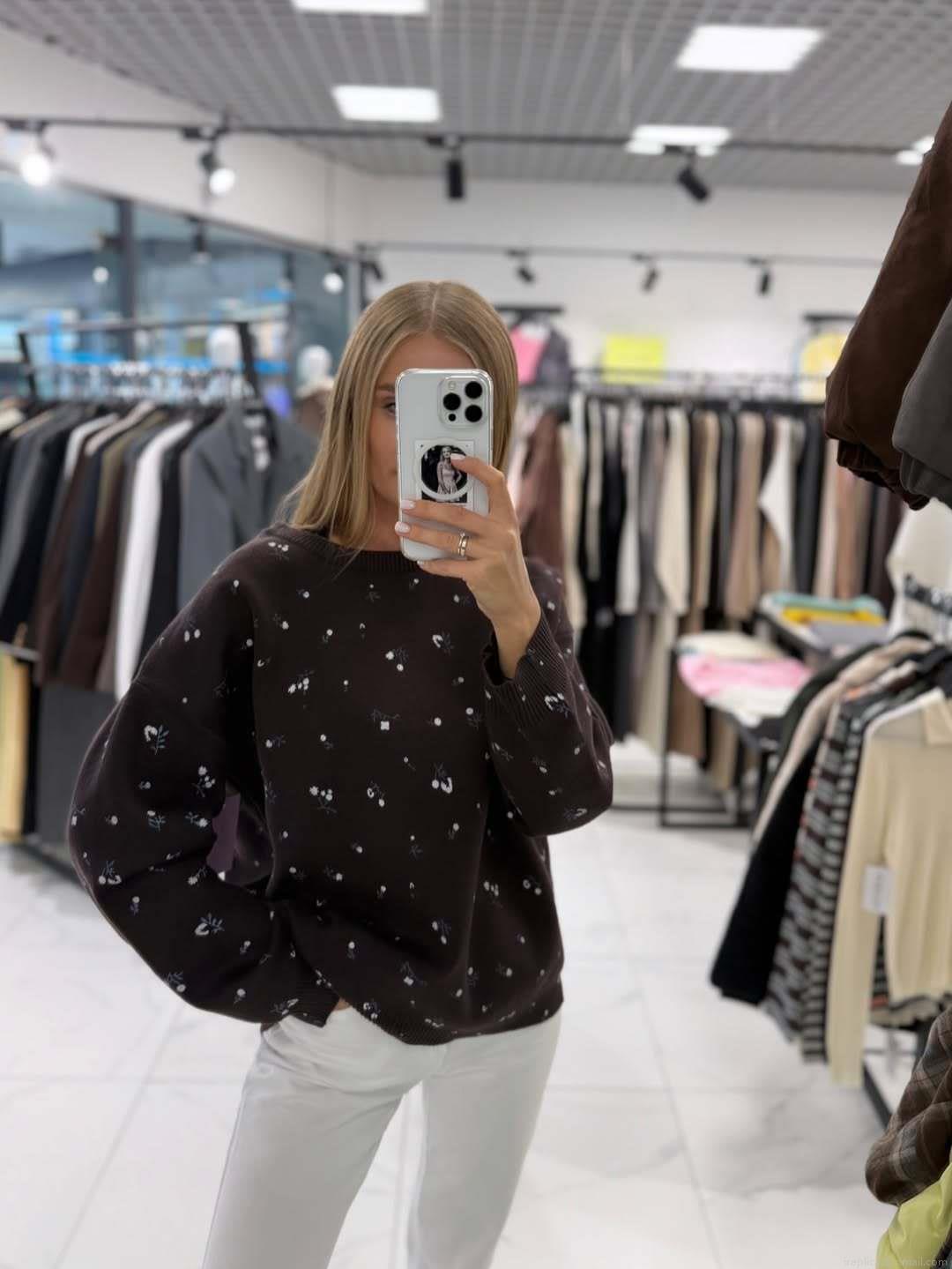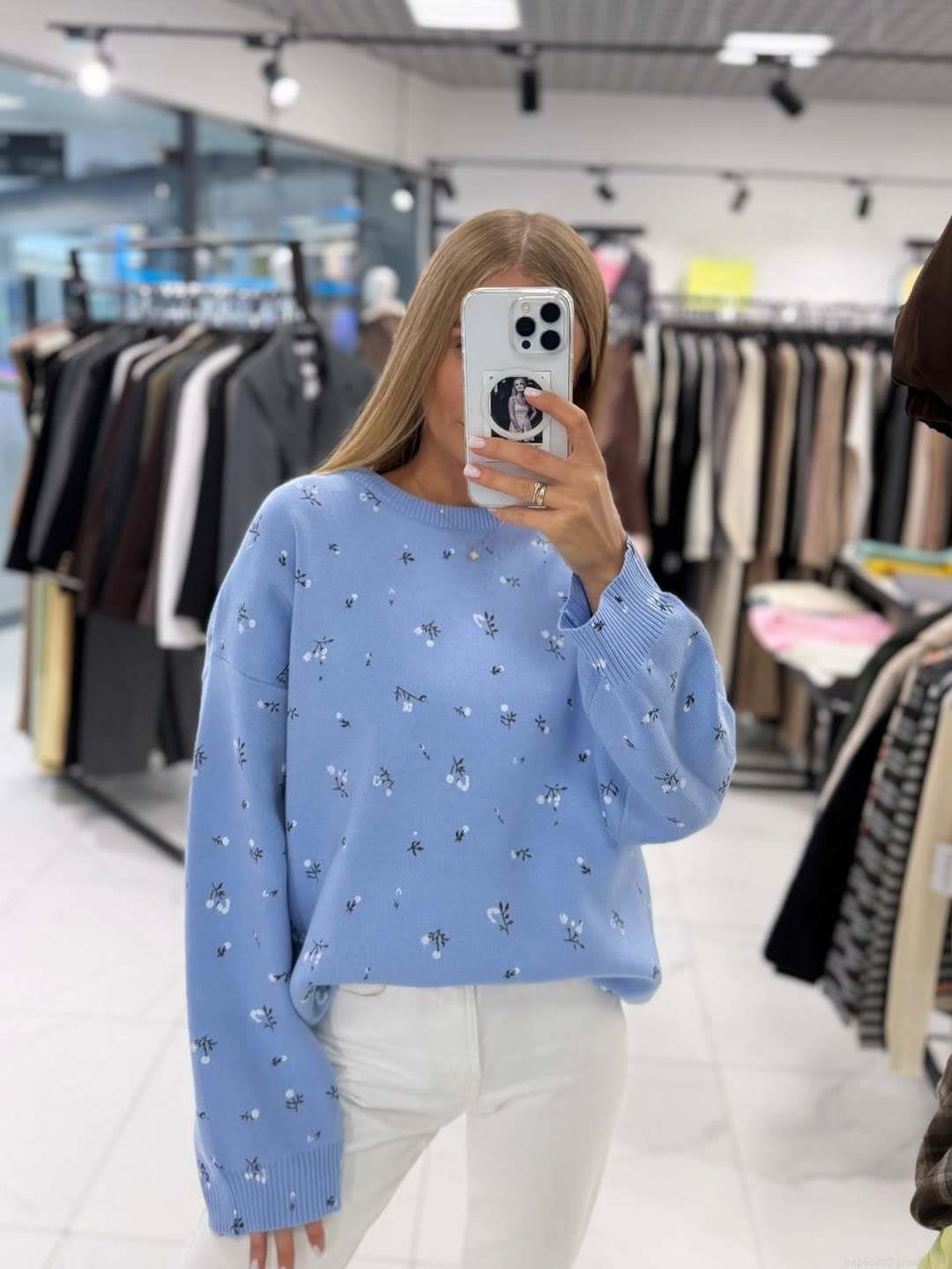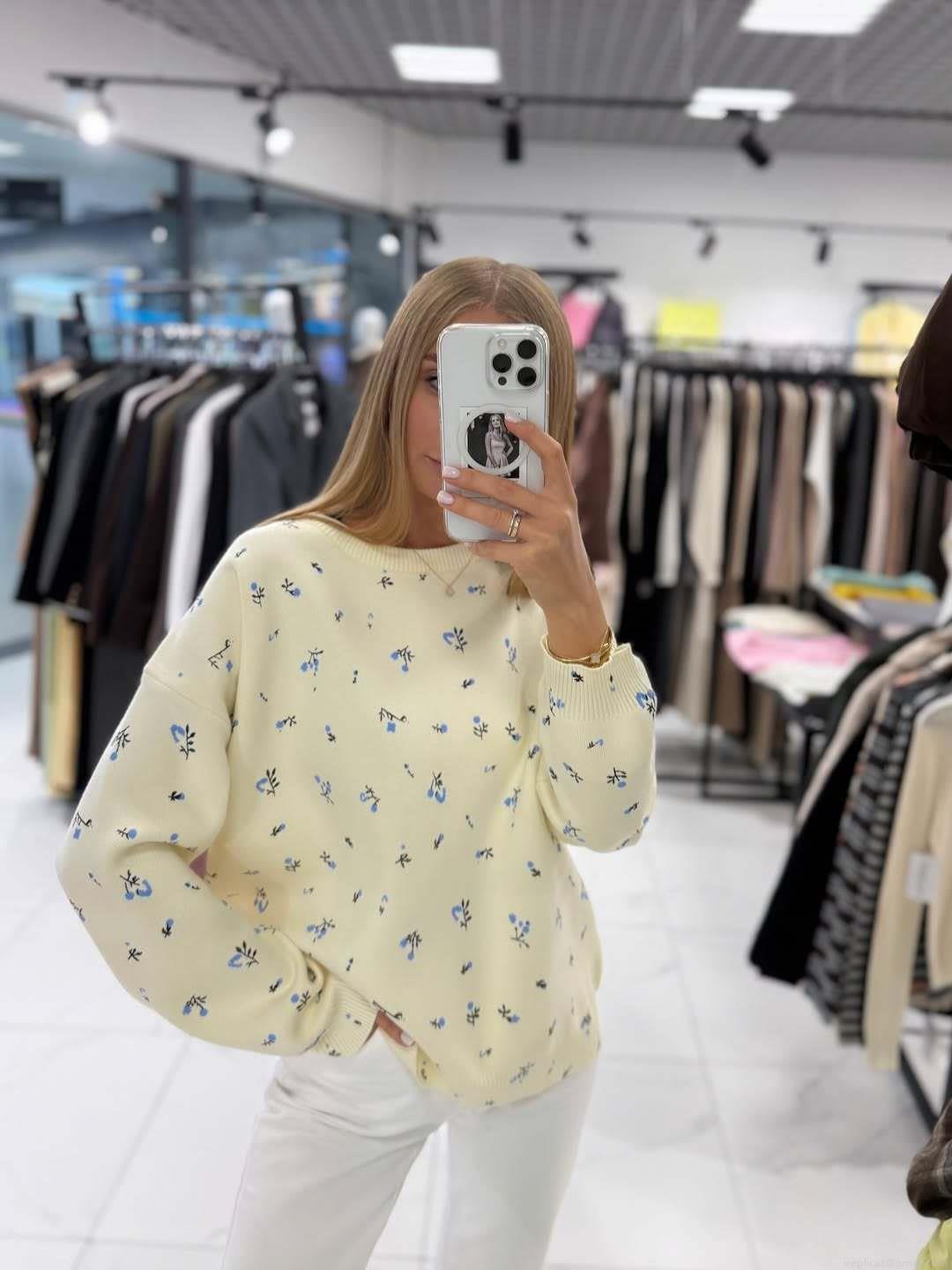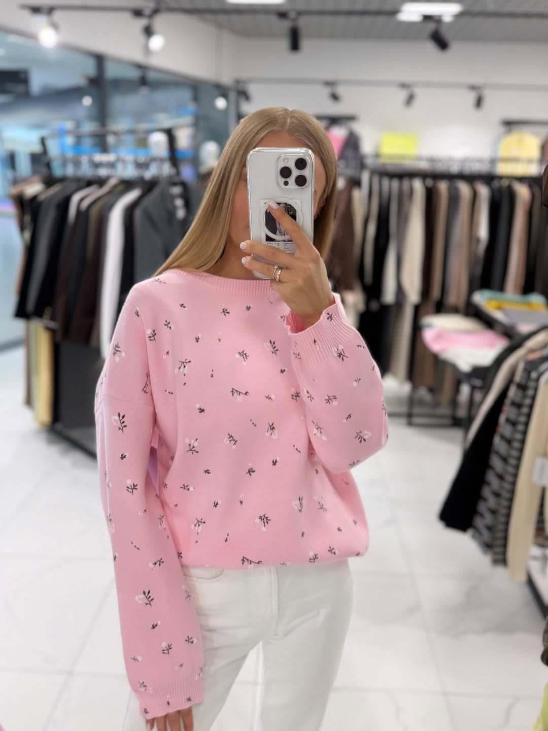 • Women's Floral Knit Sweater Round Neck Cotton Blend Pullover Loose Casual Long Sleeve Top For Autumn Winter Ladies Chic Niche Style Soft Knit Jumper
