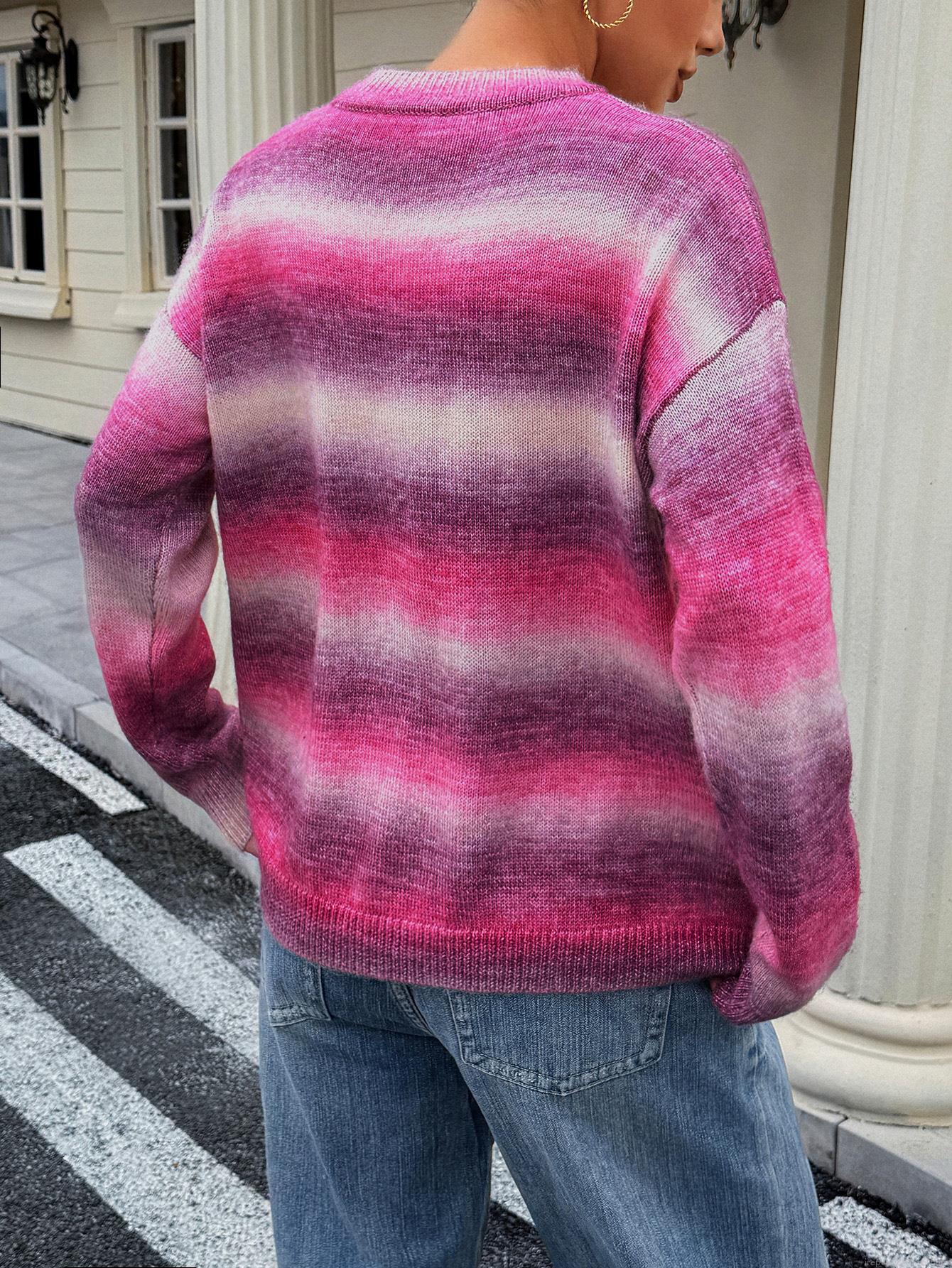 • Women's Gradient Pink Purple Crew Neck Long Sleeve Knitted Sweater Casual Loose Fit Soft Pullover Top For Autumn Winter