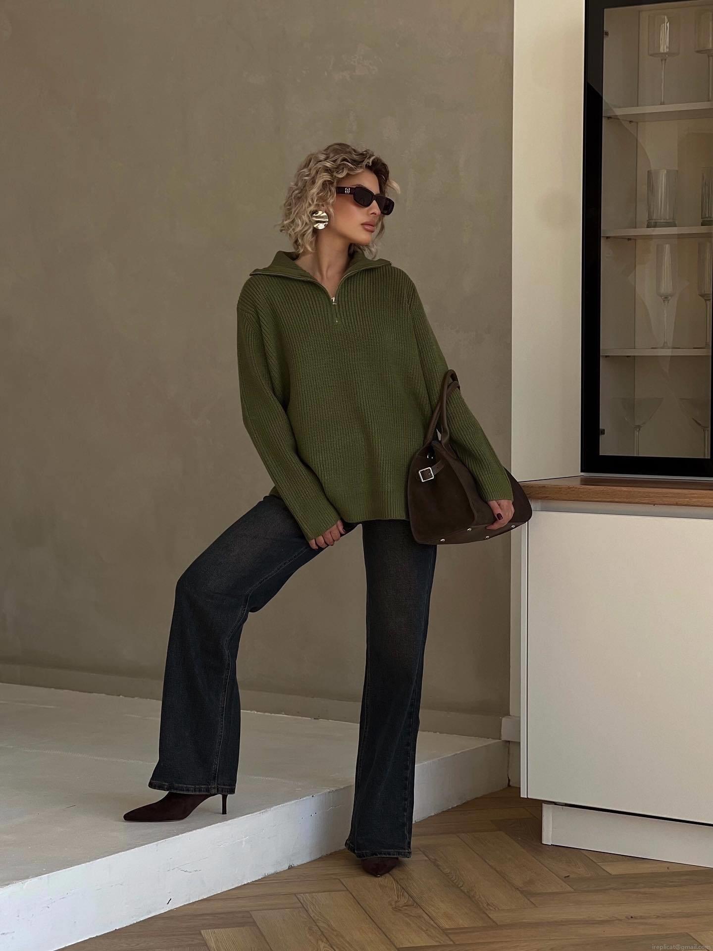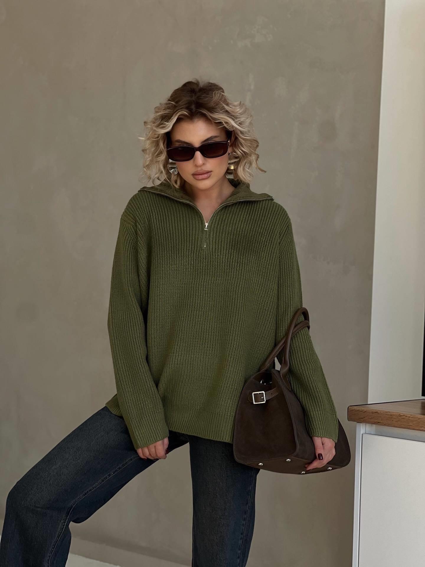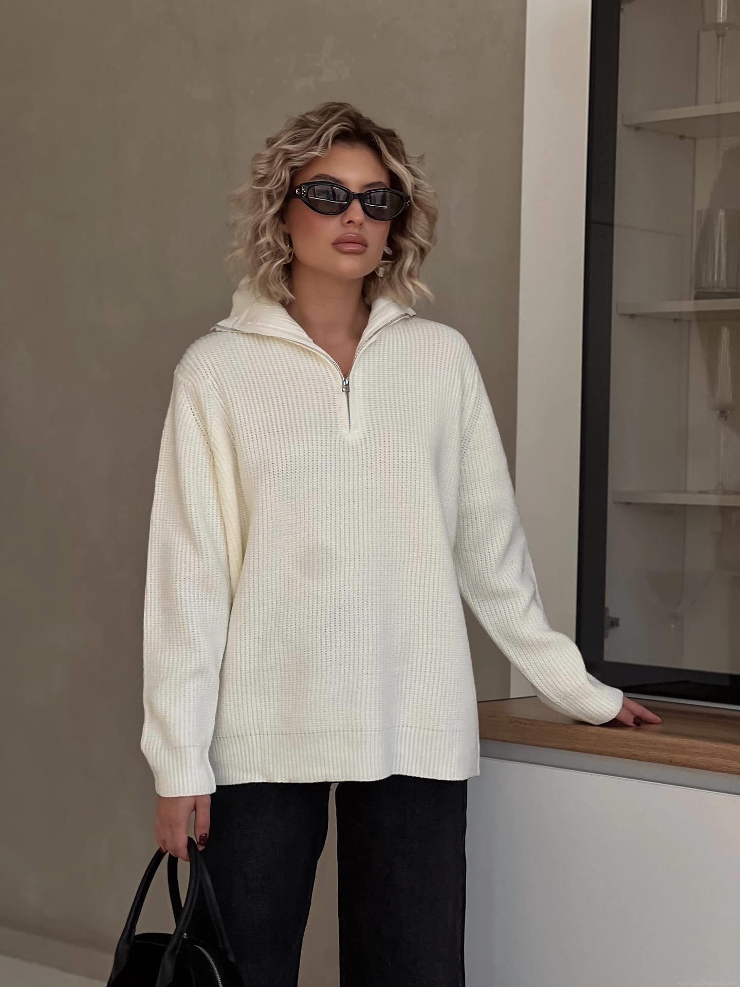 Solid Color, Half Zipper, Stand-up Collar, Coarse Needle Texture