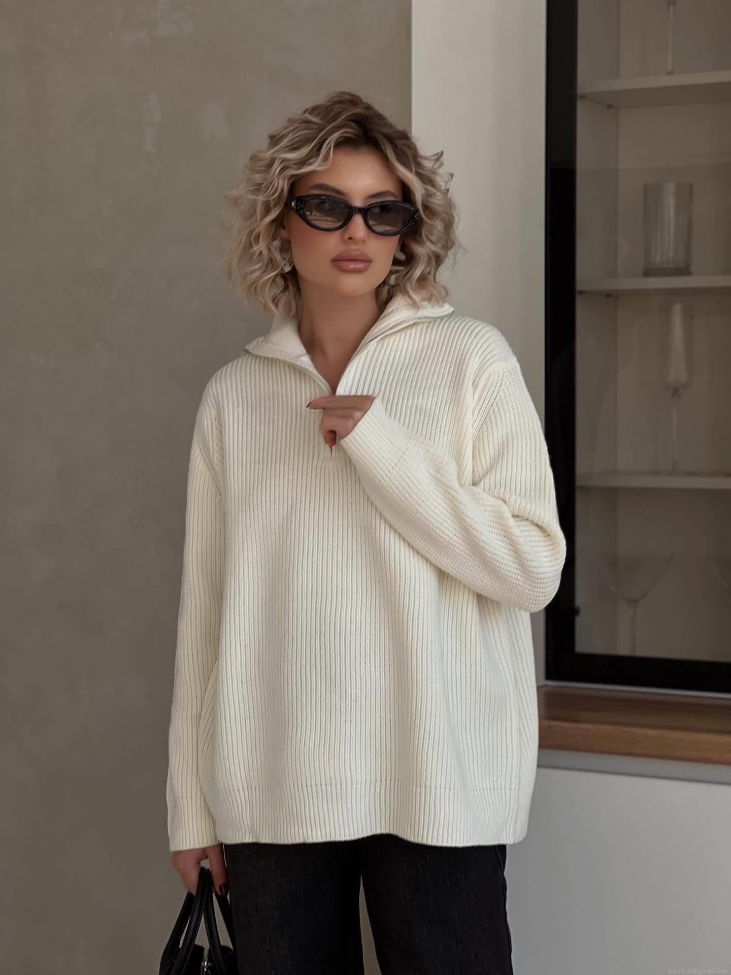 • Women's Half Zip Knit Sweater Cotton Polyester Blend Solid Color Oversized Loose Fit Long Sleeve Top For Autumn Winter Casual Streetwear