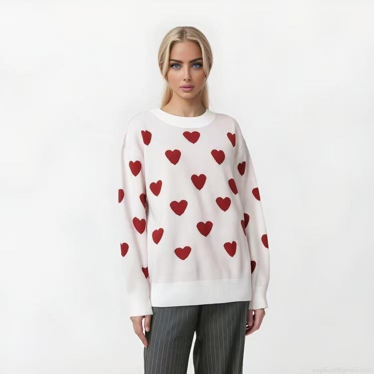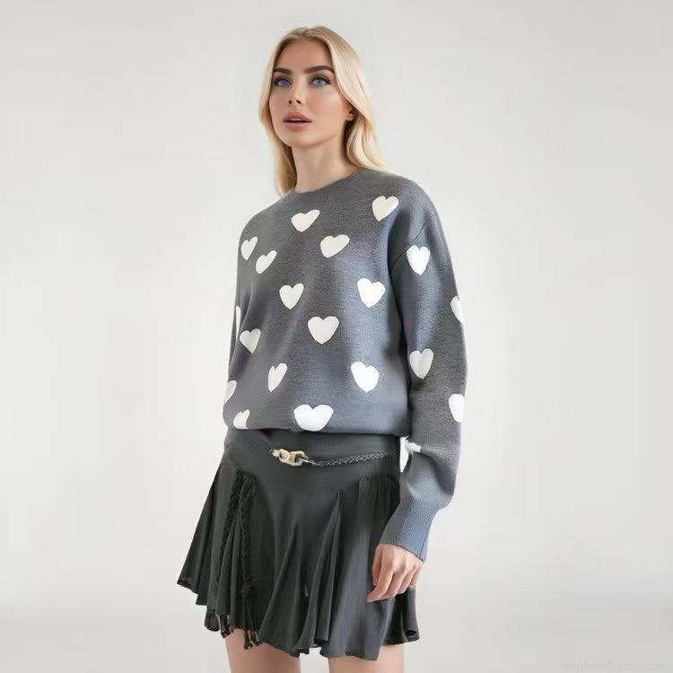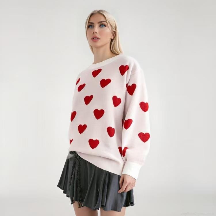 Women's Heart Pattern Knit Sweater Casual Crew Neck Long Sleeve Loose Pullover Soft Warm Jumper Tops For Ladies Autumn Winter Fashion