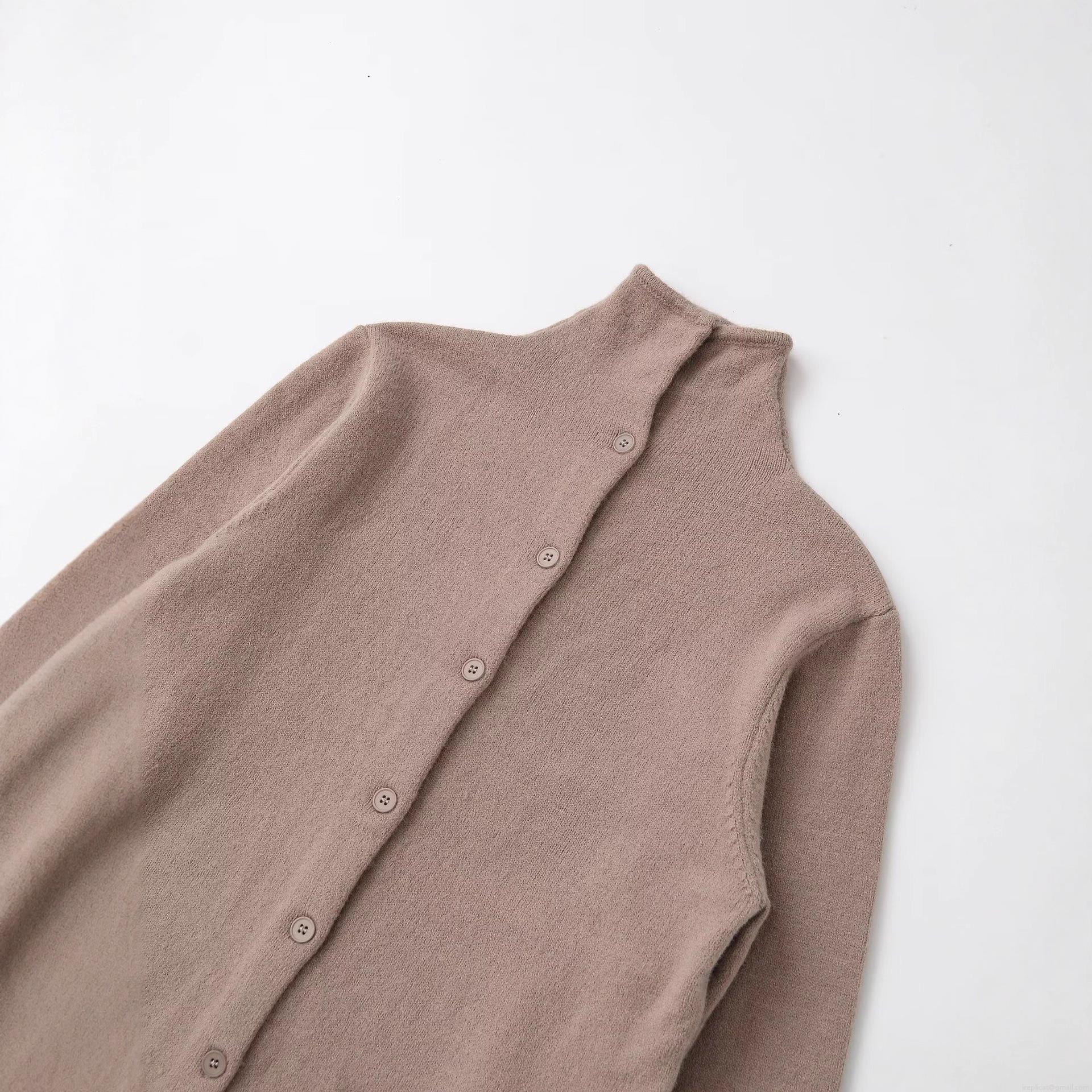 Women's High Neck Single Breasted Knit Cardigan Jacket Long Sleeve Solid Color Polyester Sweater Coat Streetwear Casual Outerwear