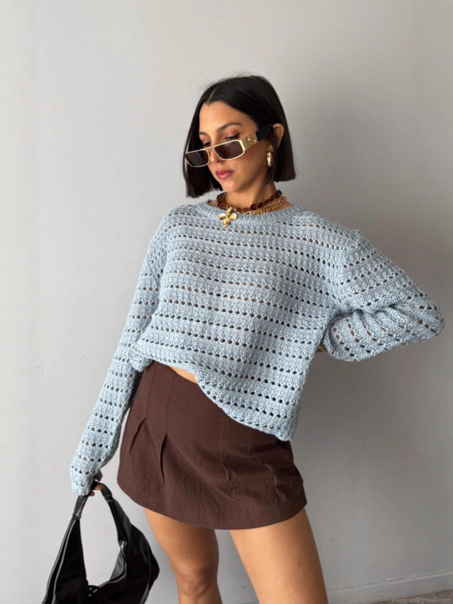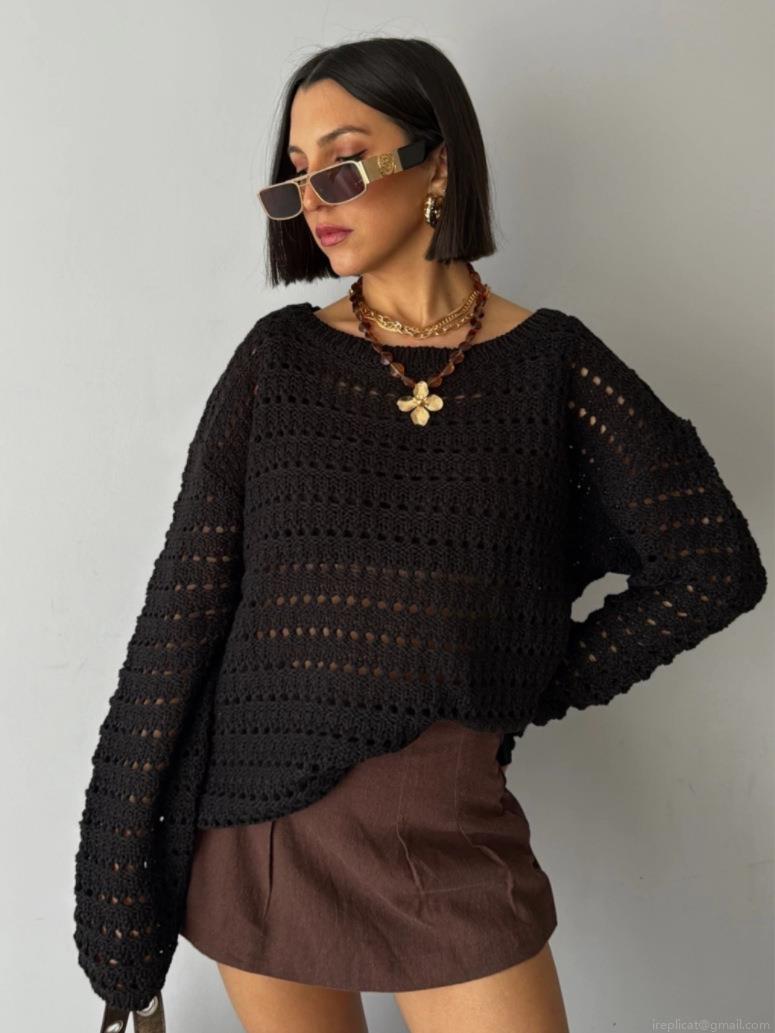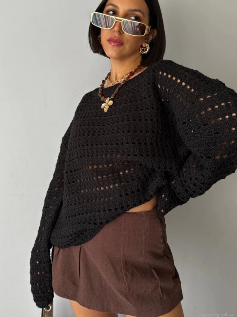 • Women's Hollow Out Crochet Knit Top Cotton Blend Long Sleeve Round Neck Loose Casual Pullover Sweater For Spring Autumn Daily Wear Ladies