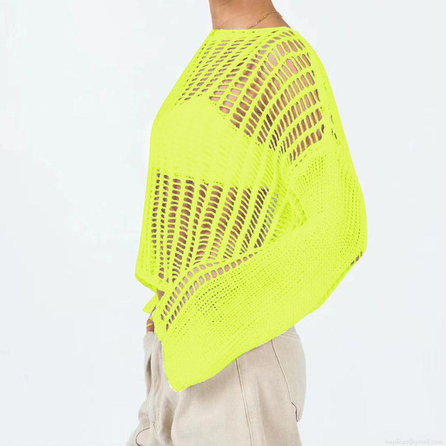 Solid Color, Hollow Out, Crochet, Perspective, Bell Sleeves