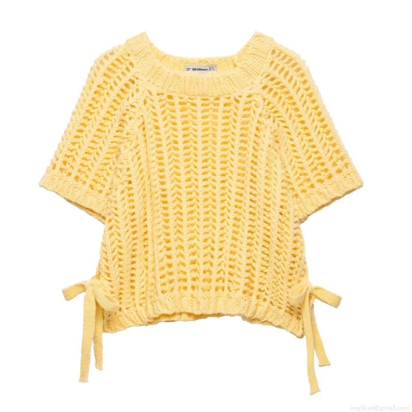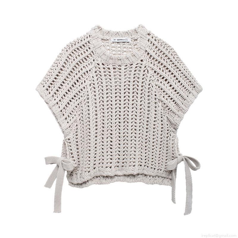 • Women's Hollow Out Knit Sweater Vest Side Lace-up Bow Short Sleeve Crewneck Pullover Top Casual Solid Color Crochet Knitwear For Women