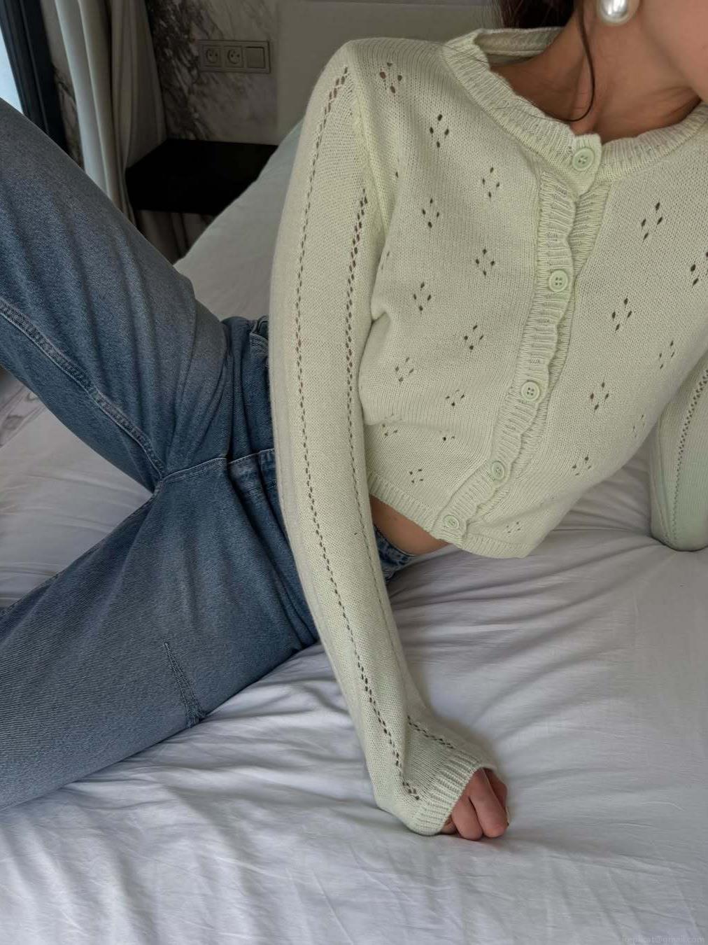 • Women's Hollow Out Pointelle Knitted Cardigan Round Neck Long Sleeve Cropped Sweater Cotton Blend Single Breasted Slim Fit Streetwear Top