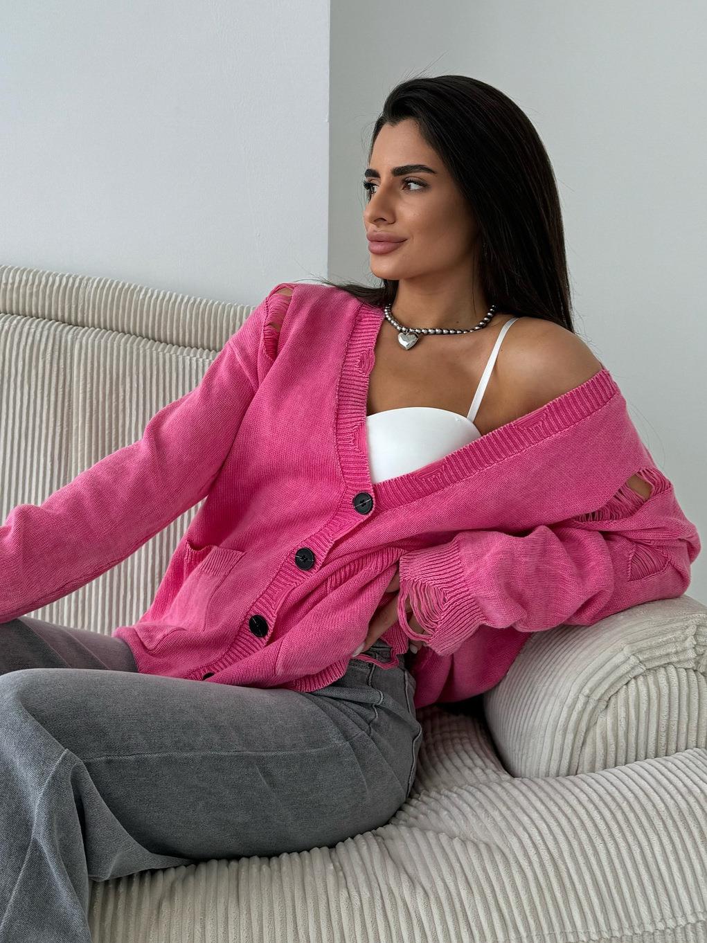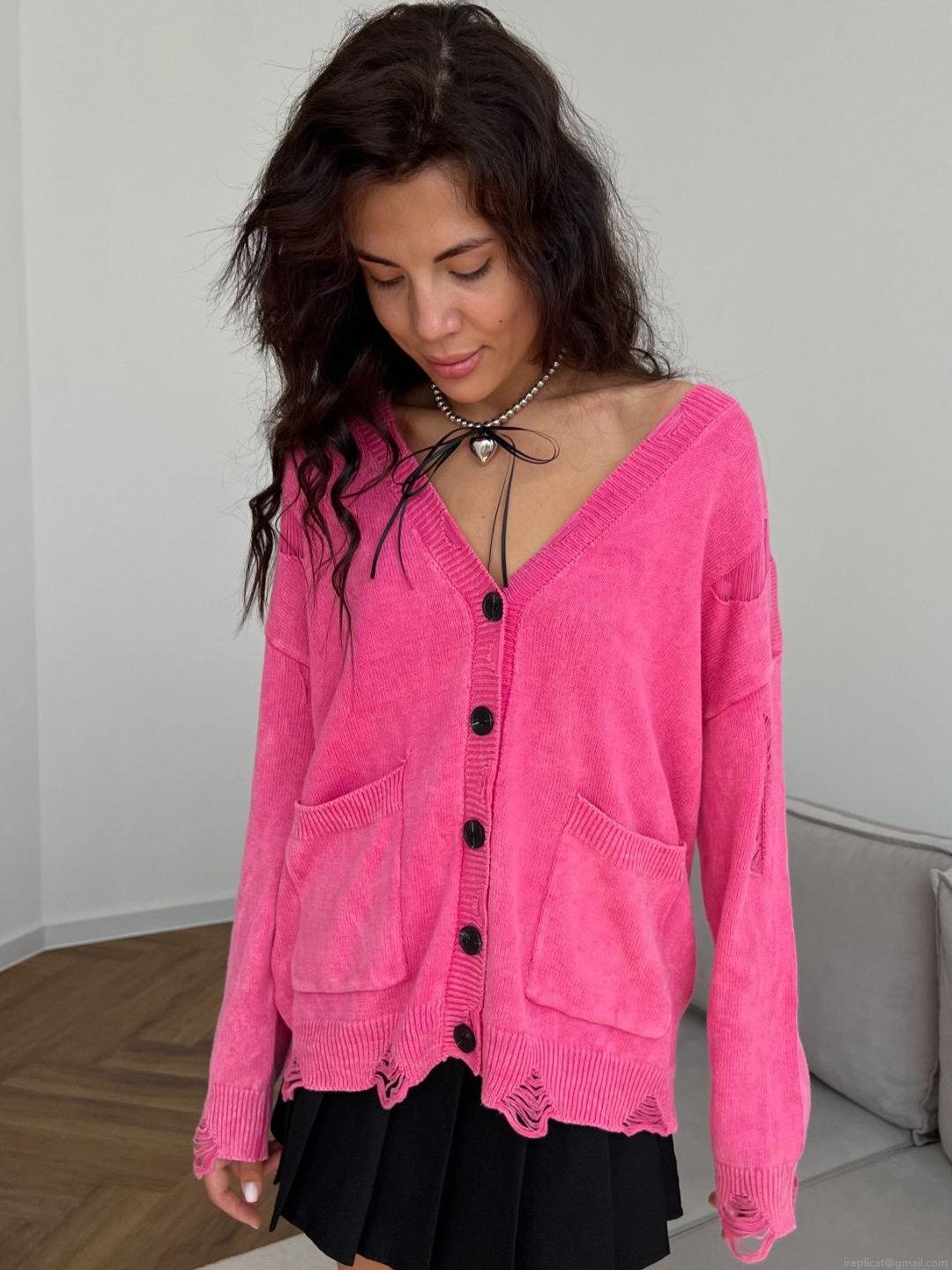 Women's Knit Cardigan Cotton Acrylic Blend Distressed Sweater V Neck Button Down Loose Fit Daily Streetwear Y2K Aesthetic American Vintage Style Long Sleeve Oversized Pink Top
