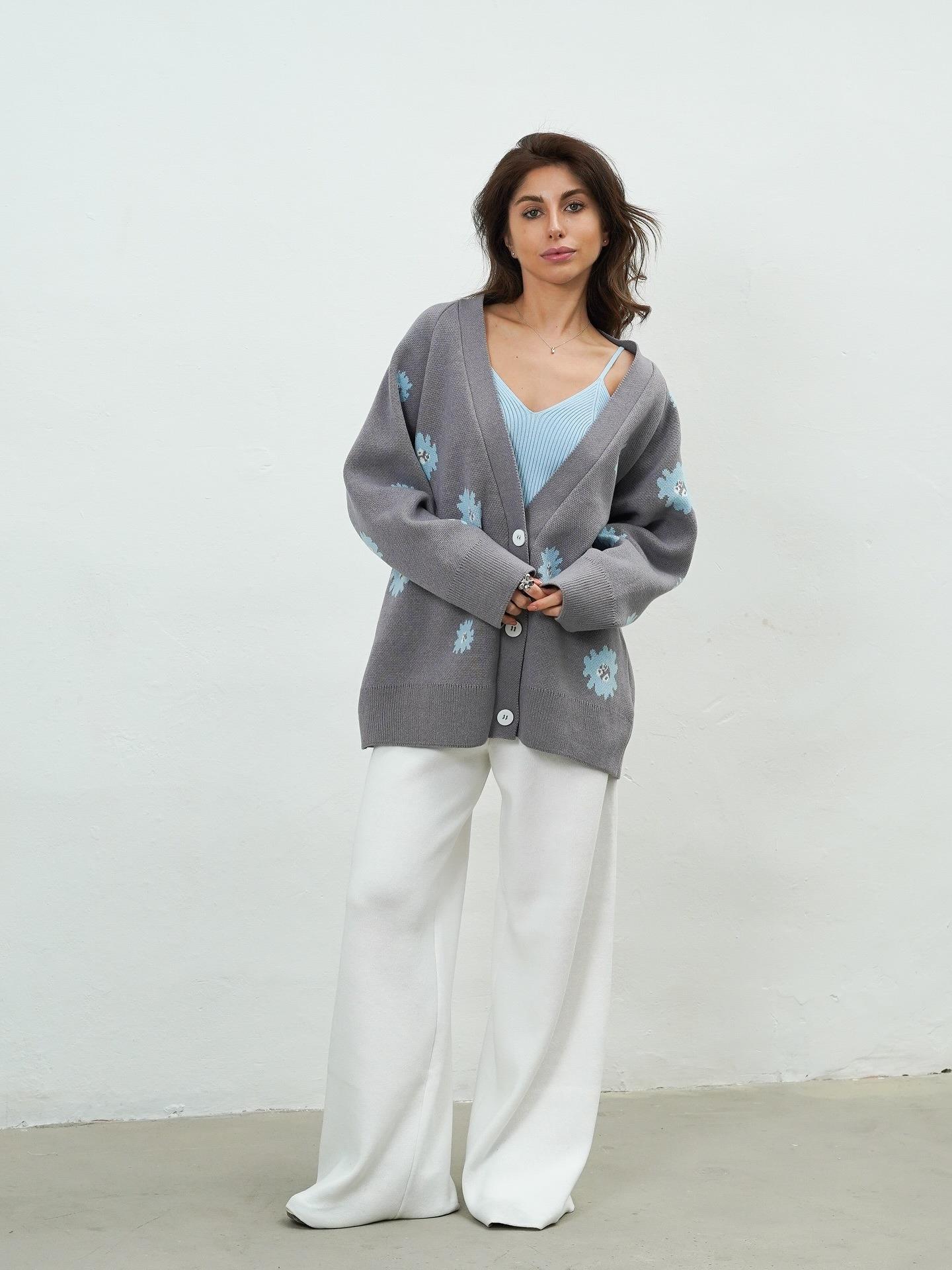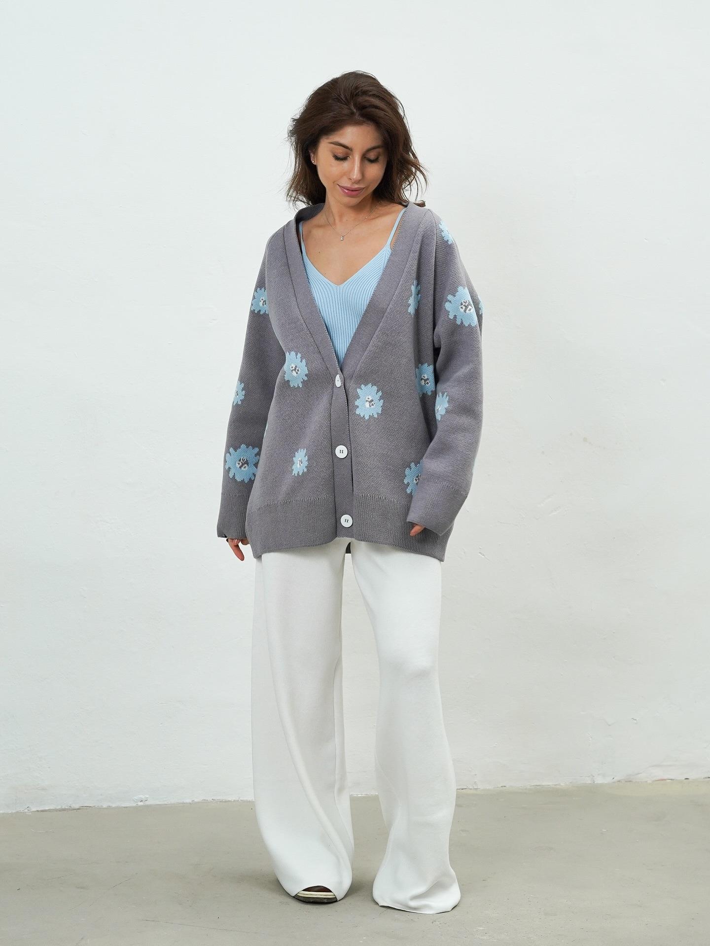 • Women's Knit Cardigan Sweater Daisy Embroidery Cotton Polyester Blend Loose Fit Warm Button Down Lazy Style Knitwear For Autumn Winter Casual Outerwear Ladies Top
