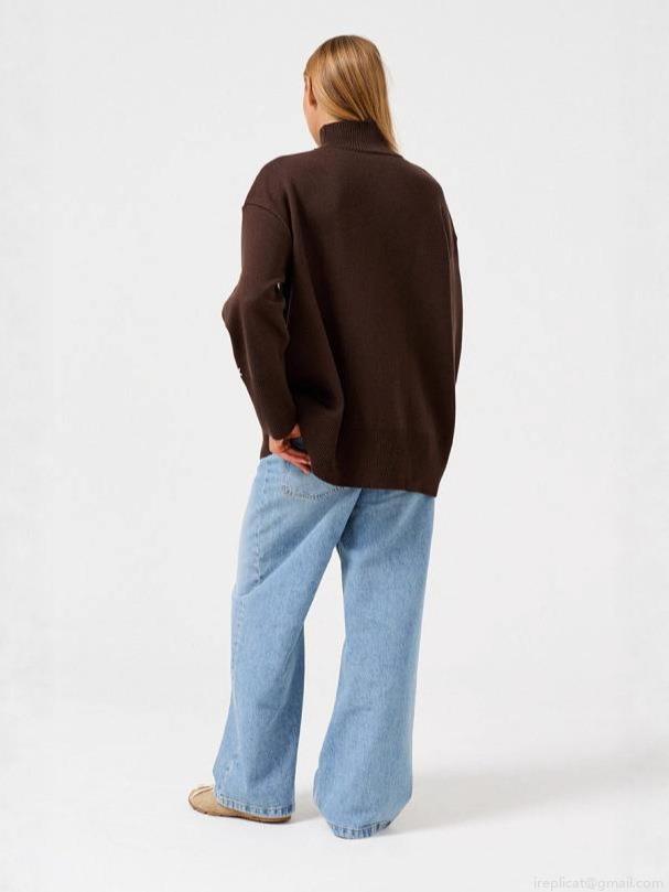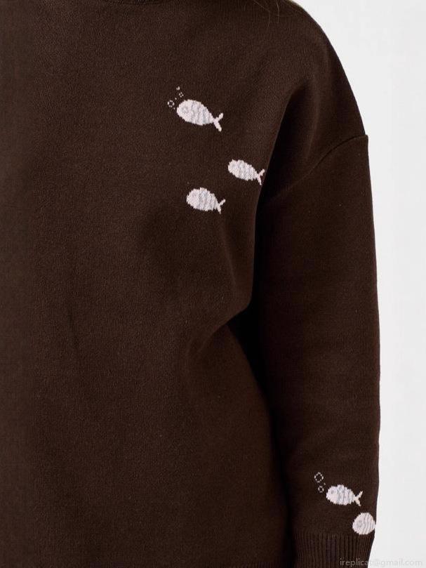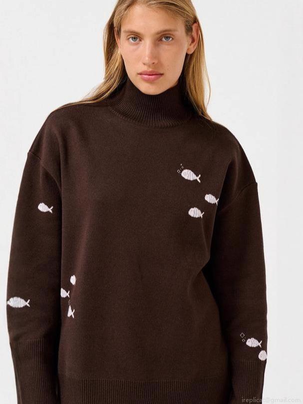 • Women's Knit Sweater Acrylic Wool Blend Small Fish Embroidery Half High Neck Loose Pullover Casual Streetwear Long Sleeve Warm Top