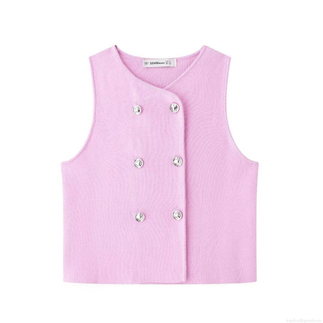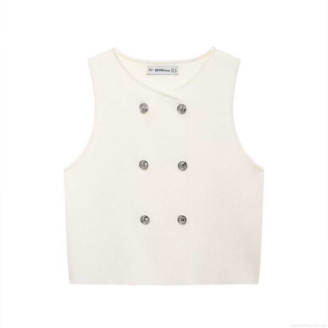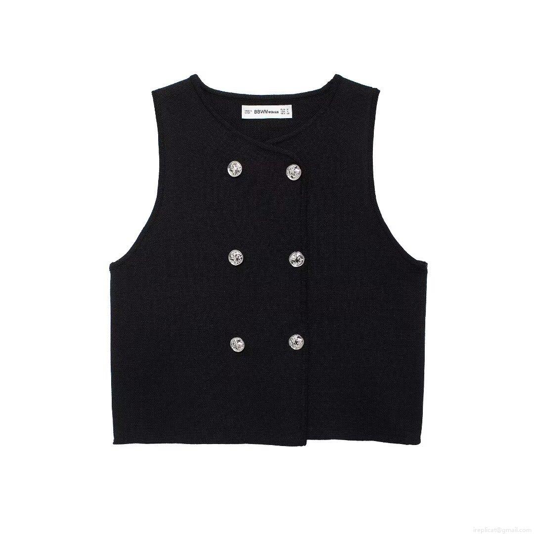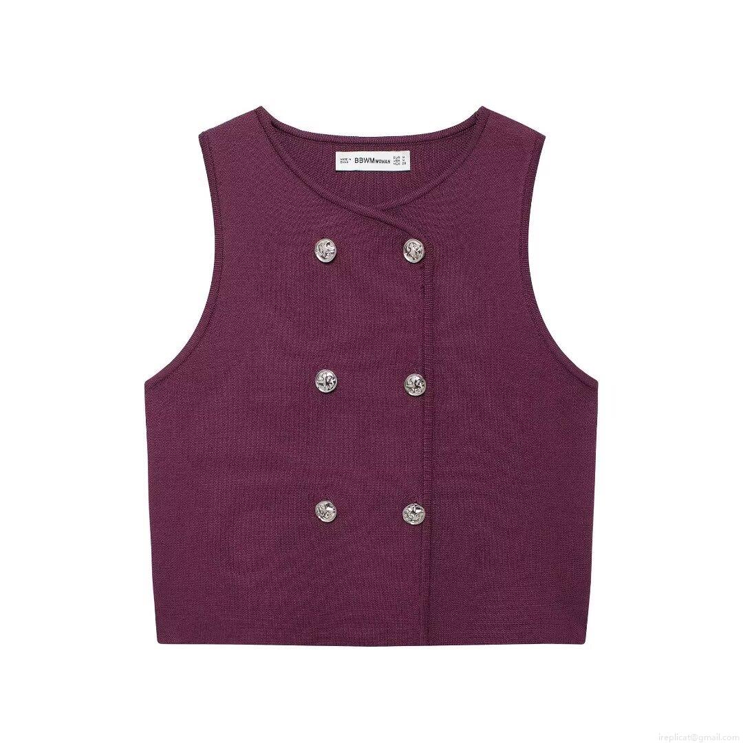 • Women's Knit Vest Sleeveless Double Breasted Metal Button Short Tank Top Autumn Fashion Polyester Solid Color Ribbed Waistcoat Casual Streetwear Ladies Clothing