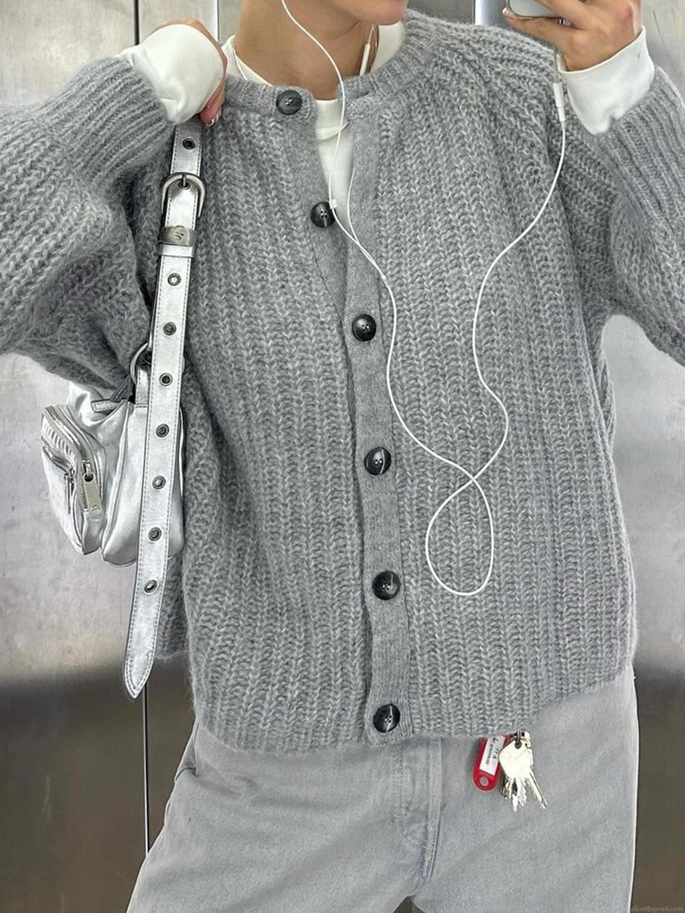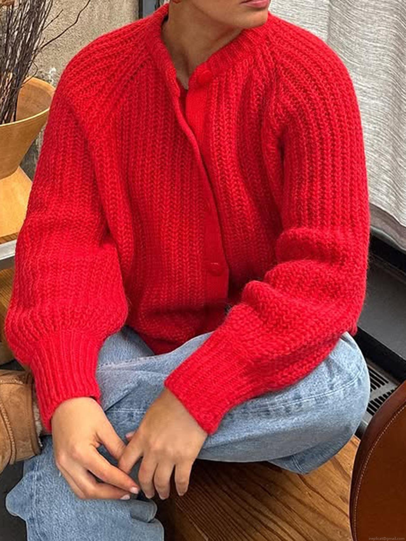 • Women's Knitted Cardigan Sweater 100% Polyester Round Neck Button Down Long Sleeve Chunky Knit Solid Color Casual Autumn Winter Outerwear For Women
