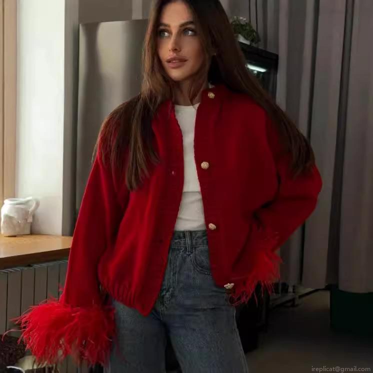• Women's Knitted Cardigan Sweater With Faux Feather Cuffs Gold Button Single Breasted Long Sleeve Solid Color Knitwear Top For Party Casual Women