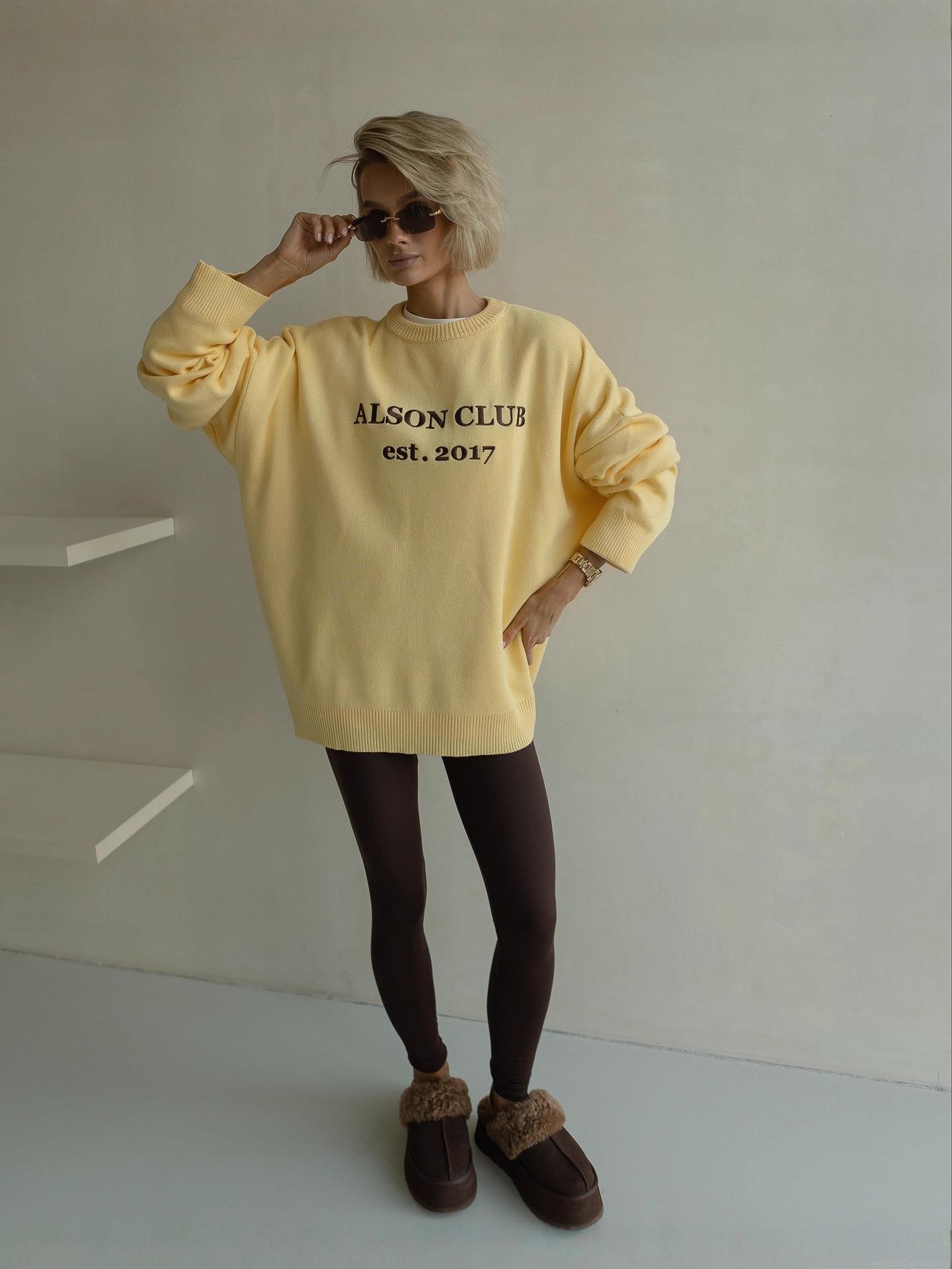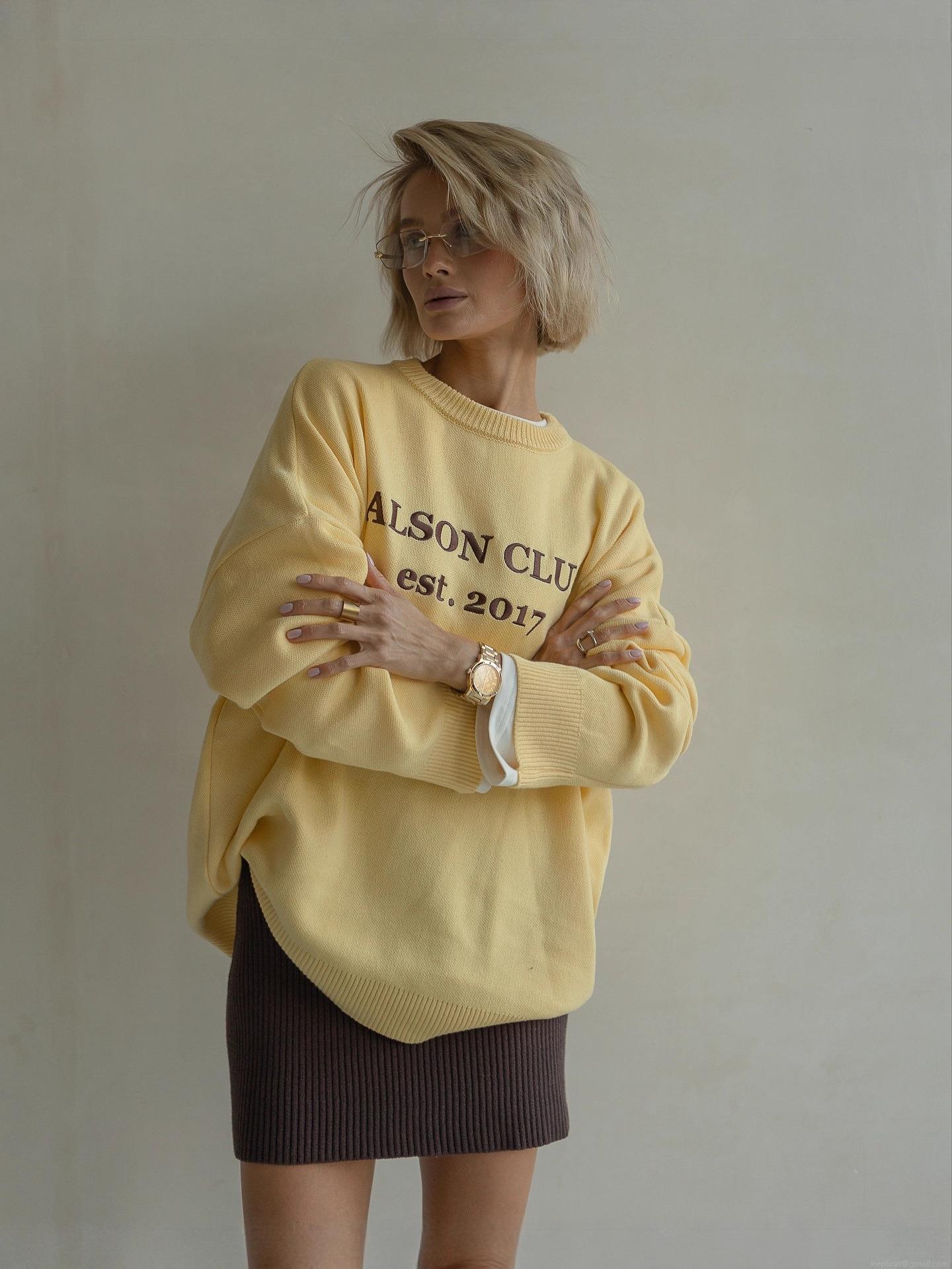 • Women's Lazy Style Oversized Letter Print Sweater Round Neck Long Sleeve Knitted Top For Autumn Winter Casual Streetwear Cotton Blend Pullover