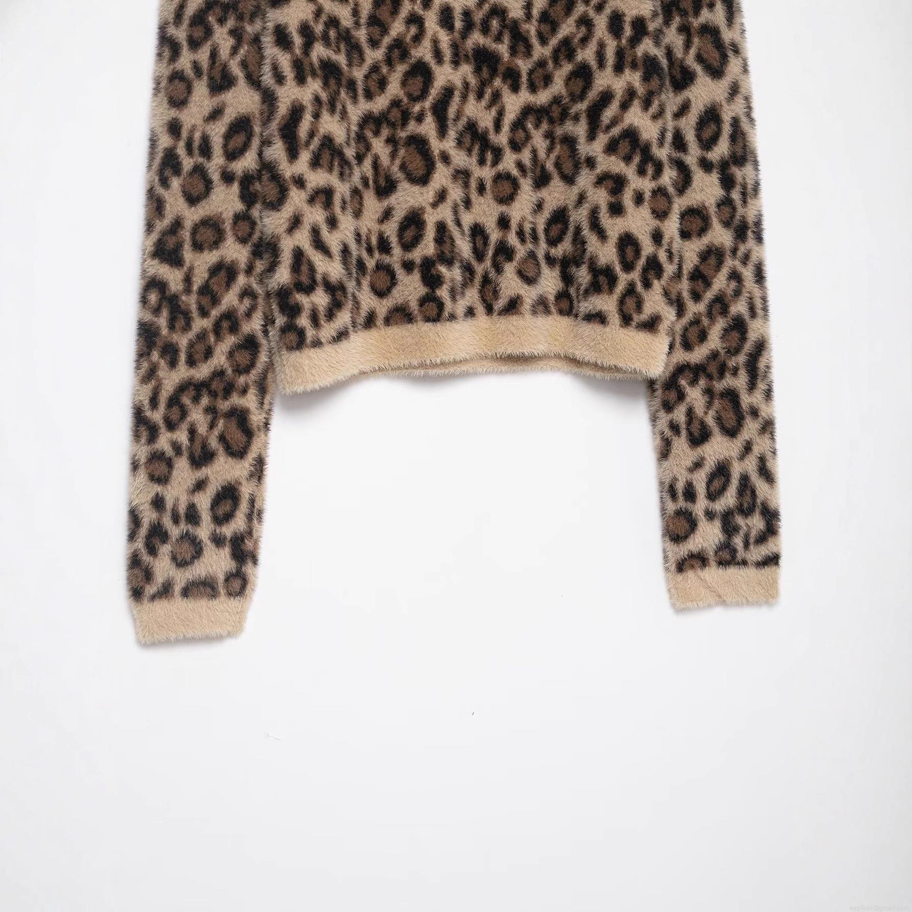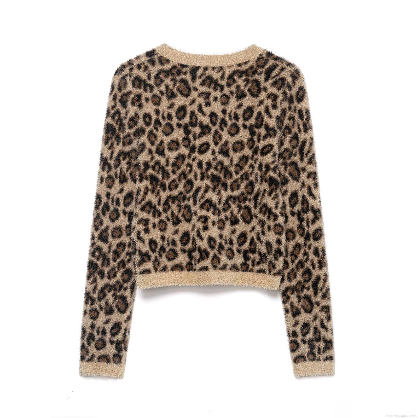 • Women's Leopard Print Sweater Faux Mink Fur Polyester Knit Round Neck Long Sleeve Ribbed Cuff Casual Streetwear Autumn Winter Warm Pullover Top