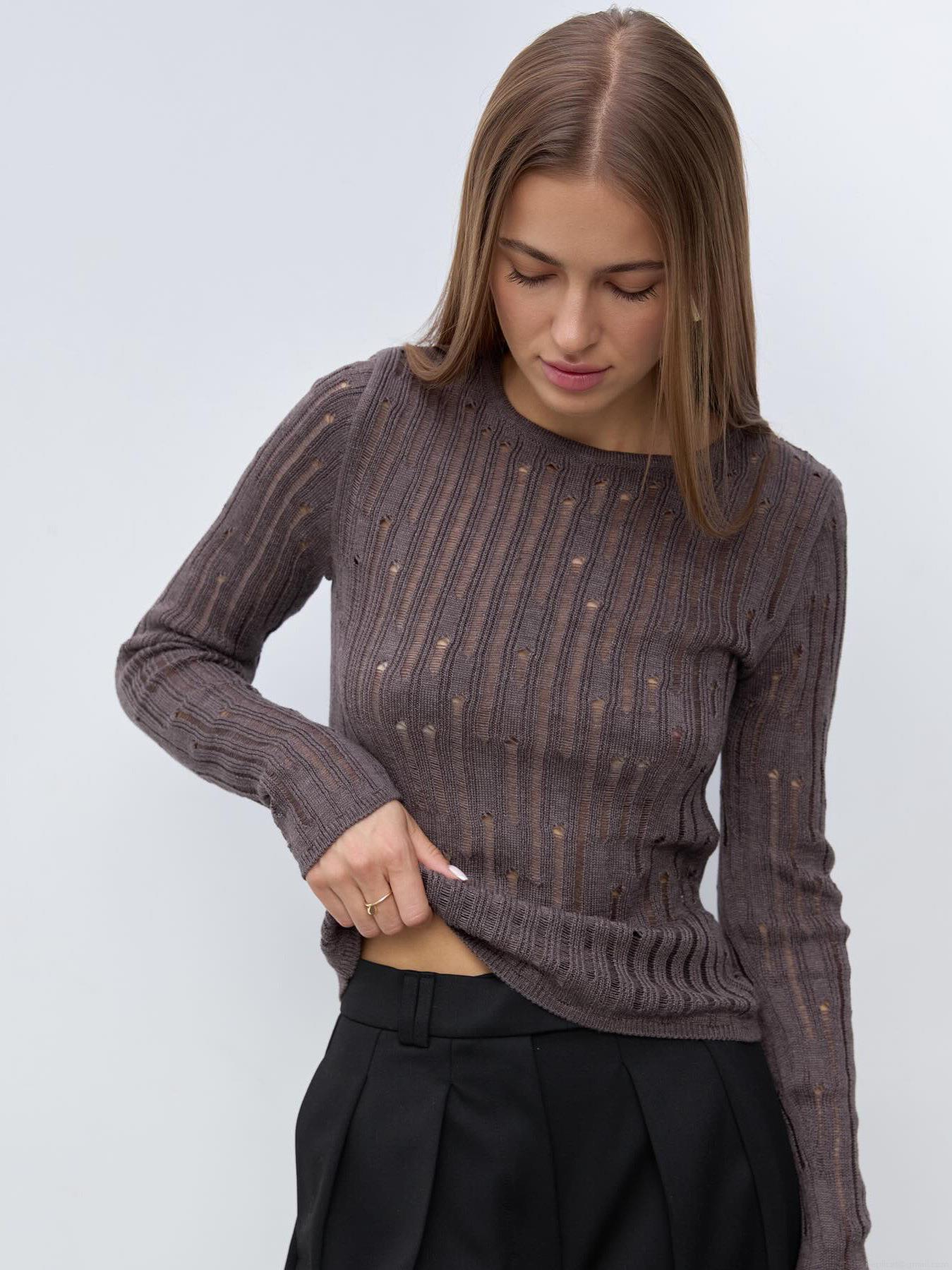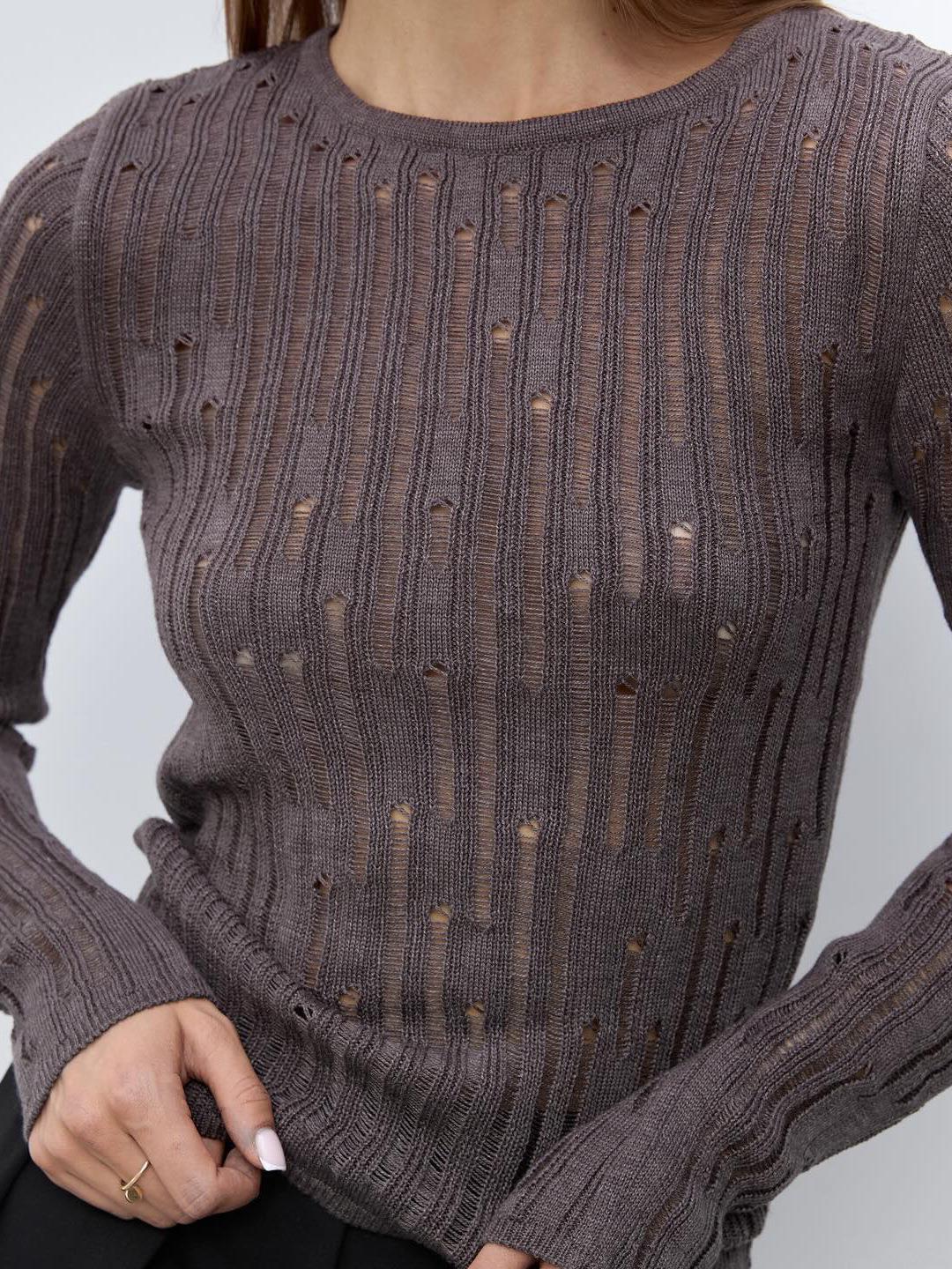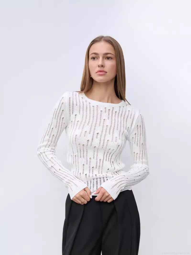 • Women's Long Sleeve Hollow Out Knit Sweater Sexy See-Through Distressed Pullover Top Chic Casual Round Neck Slim Fit Knitted Jumper For Daily Date Party