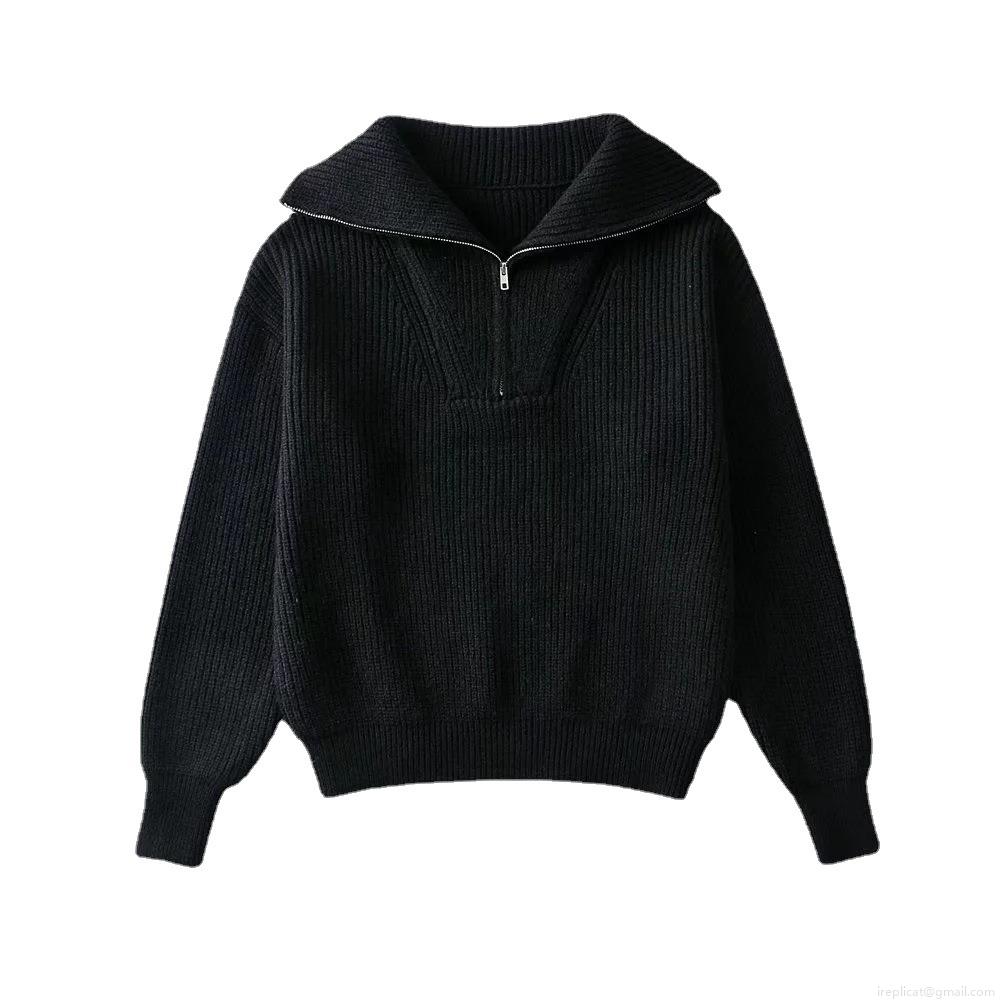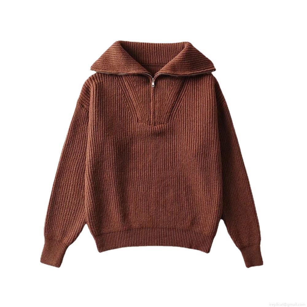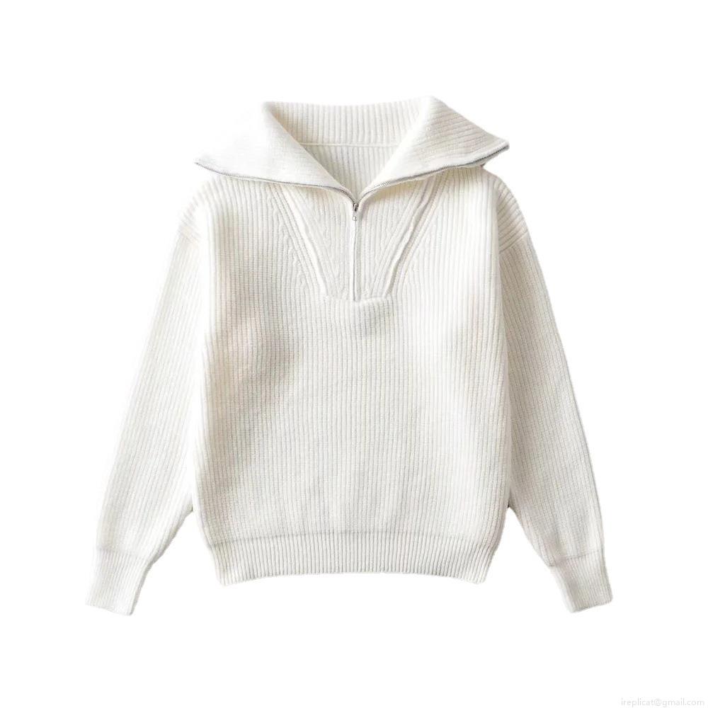 • Women's Loose Half Zip Ribbed Knit Sweater Long Sleeve Lapel Pullover Oversized Thick Casual Jumper Streetwear Autumn Winter Knitwear Top
