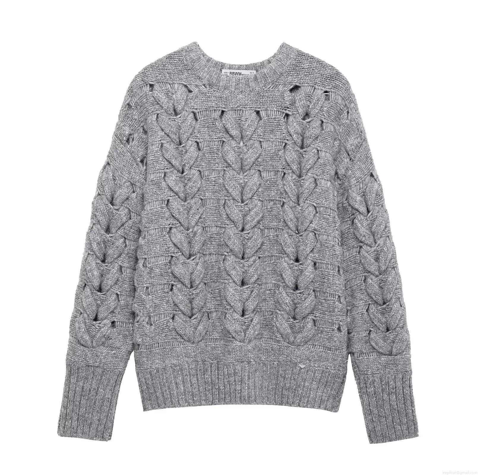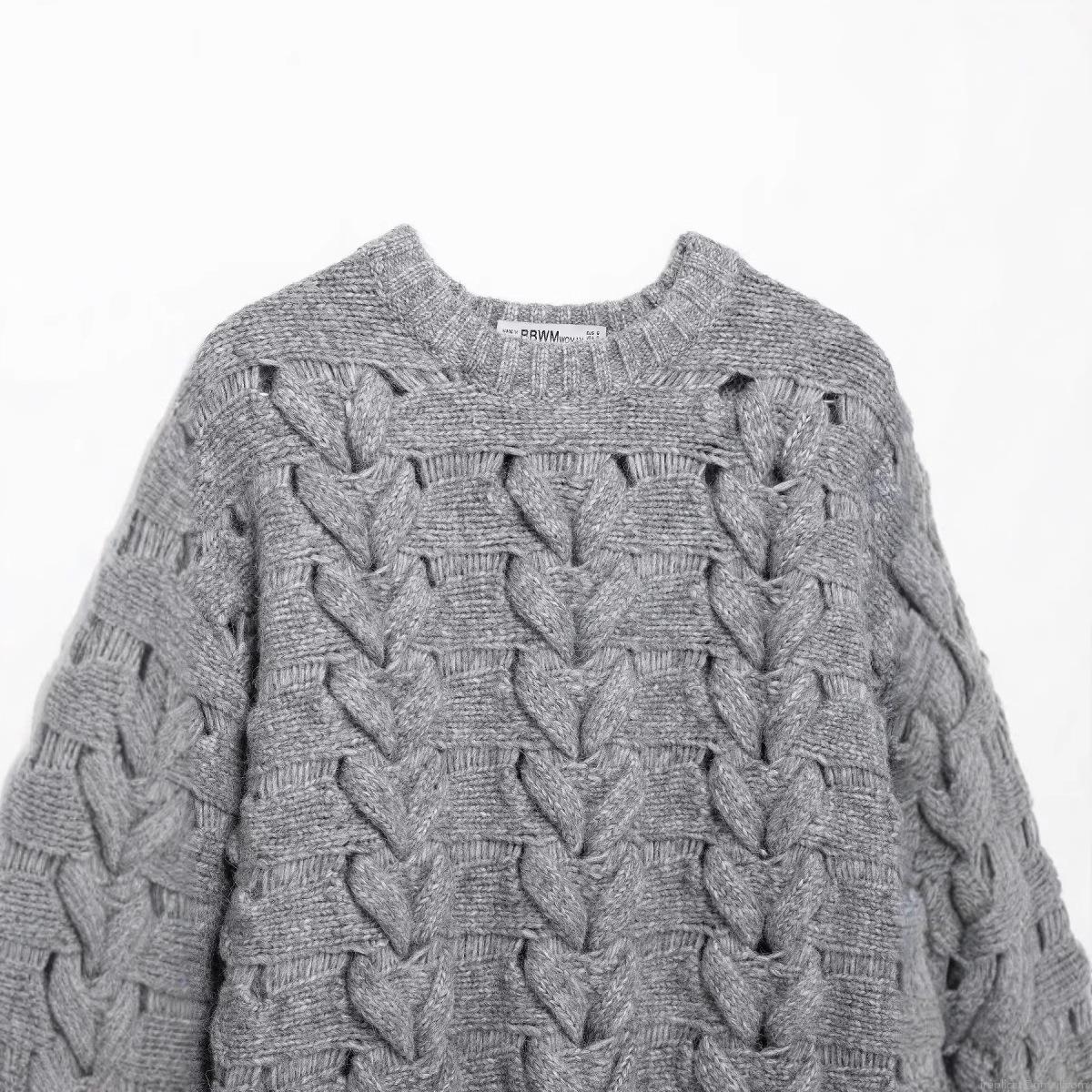 • Women's Loose Heart Shaped Cable Knit Sweater Crew Neck Long Sleeve Chunky Pullover Casual Winter Warm Polyester Knitwear Top for Women Fashion Streetwear