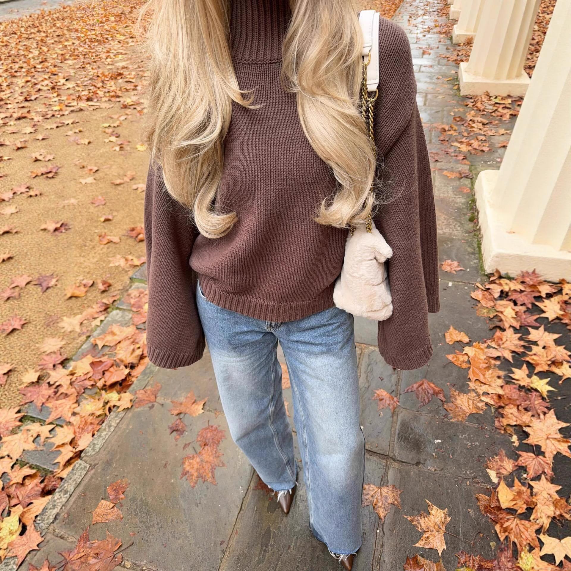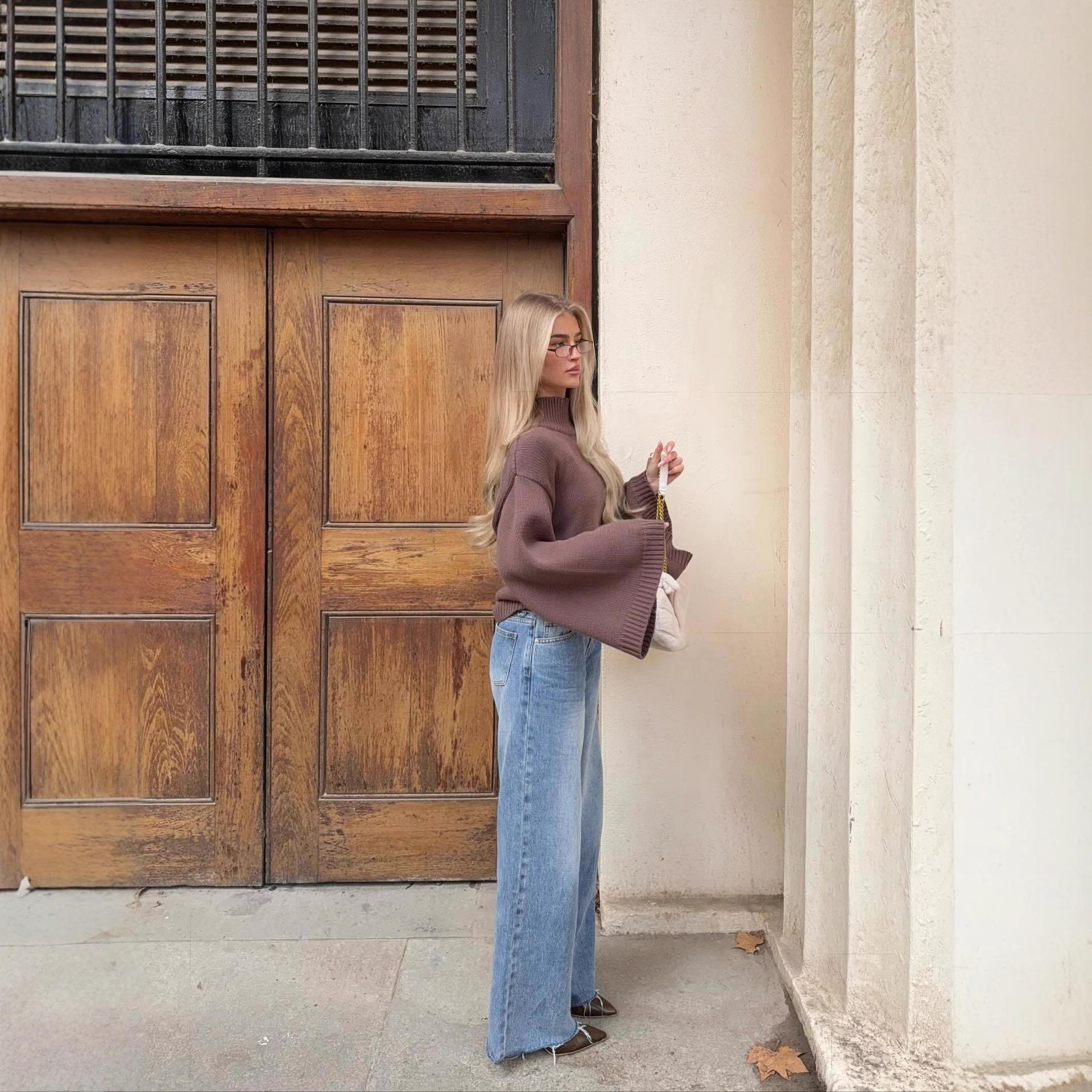 • Women's Loose High Collar Knitted Pullover Sweater Oversized Warm Soft Knitwear For Autumn Winter Casual Streetwear Ladies Solid Camel Top