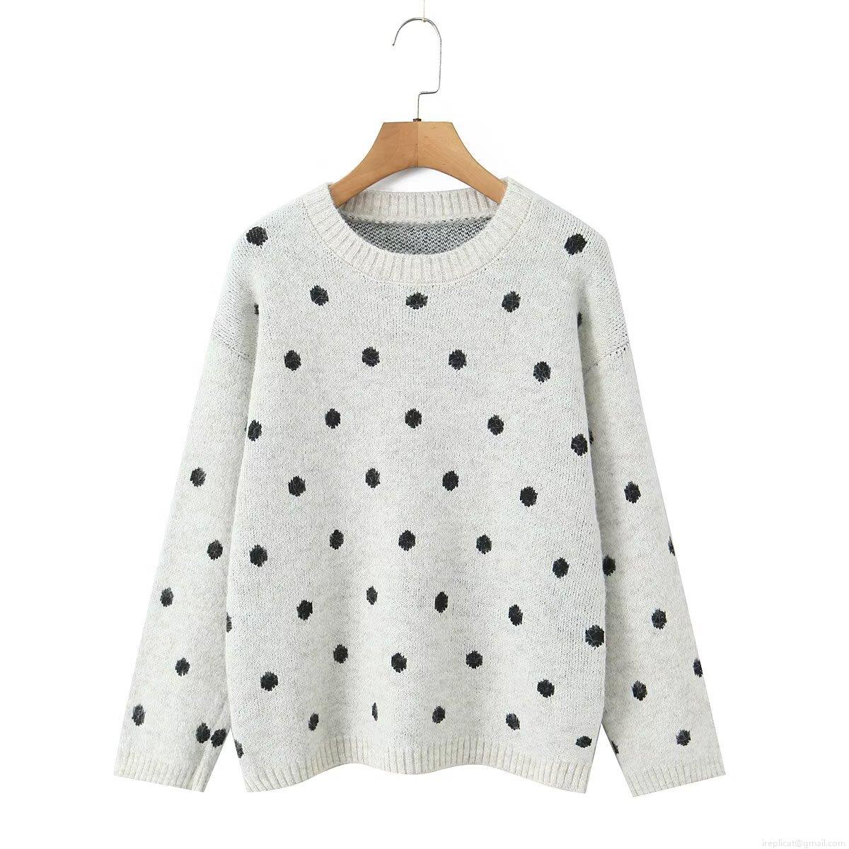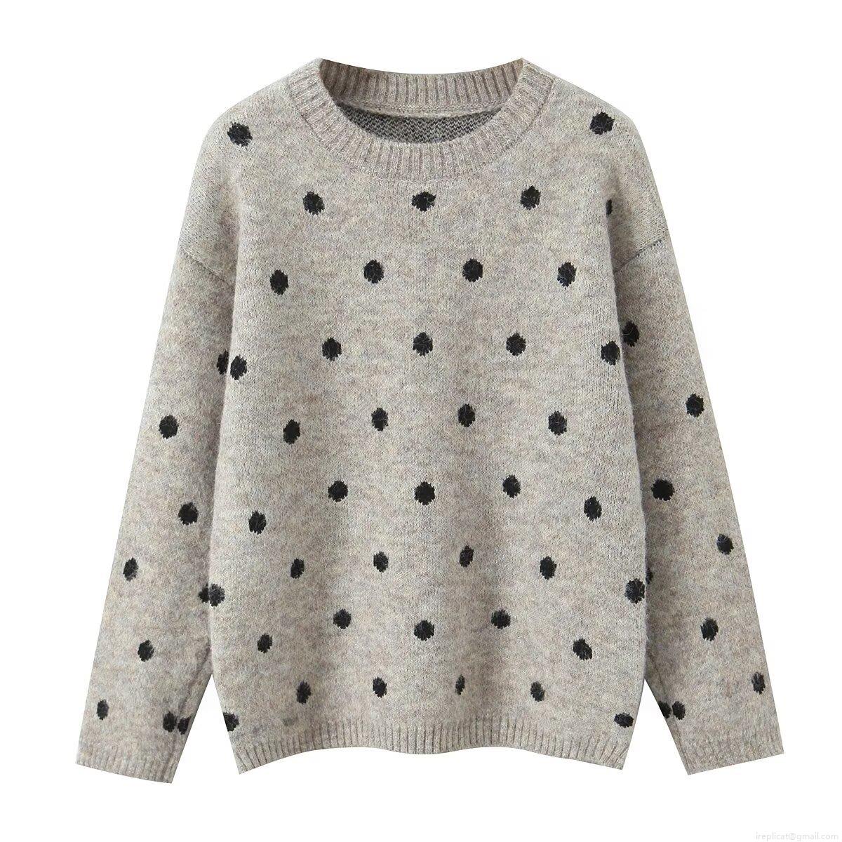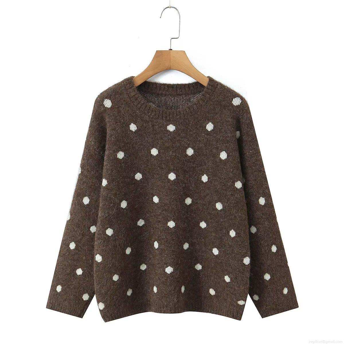 • Women's Loose Polka Dot Pullover Sweater Round Neck Long Sleeve Knit Top Polyester Regenerated Cellulose Fiber Casual Warm Knitwear