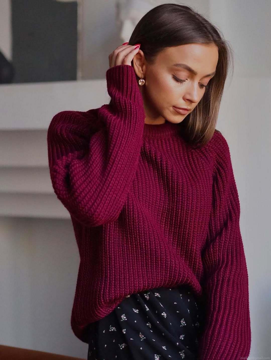 • Women's Loose Thick Knit Sweater Cotton Blend Crew Neck Long Sleeve Pullover Solid Color Casual Warm Jumper Autumn Winter Fashion Knitwear