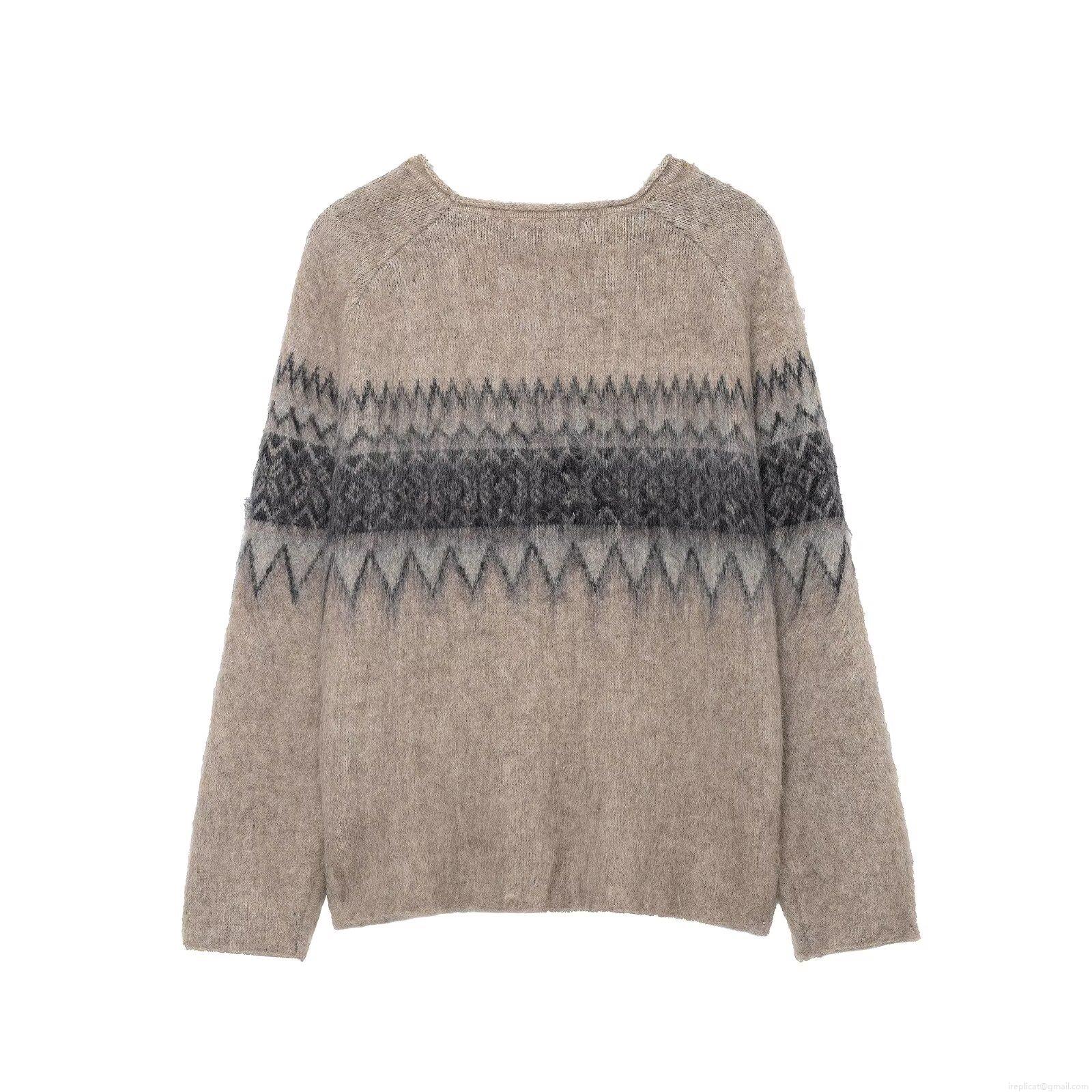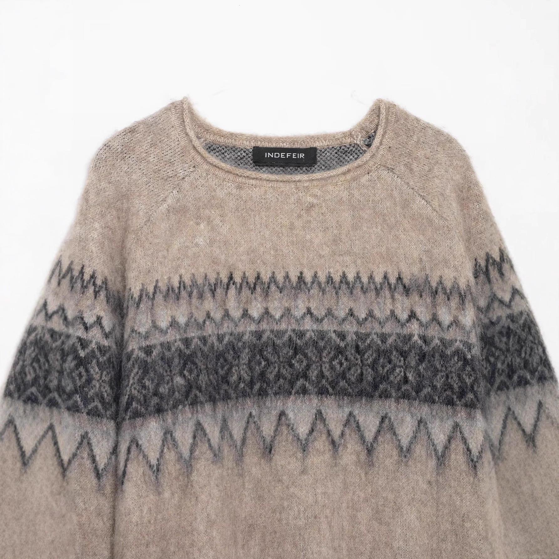 • Women's Nordic Fair Isle Jacquard Knit Sweater Oversized Round Neck Long Sleeve Mohair Texture Pullover Jumper For Autumn Winter Daily Streetwear