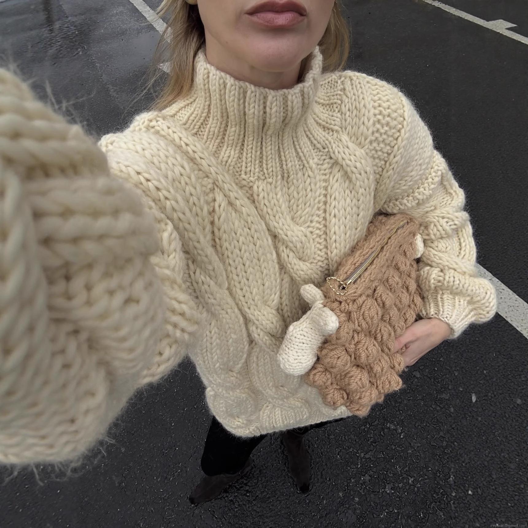 • Women's Oversized Cable Knit Sweater Thick High Neck Long Sleeve Pullover Jumper Casual Loose Solid Color Knitted Tops For Autumn Winter