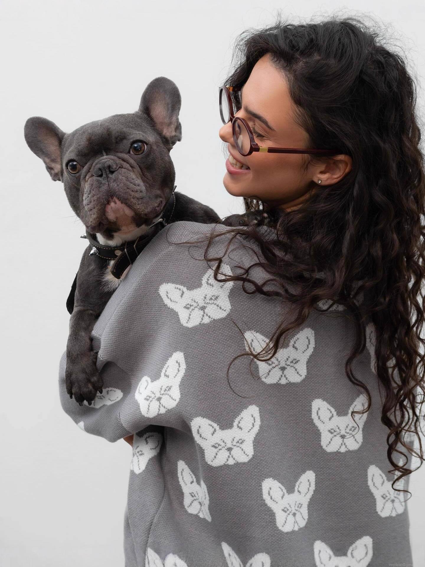 Jacquard, French Bulldog, Full Print, Dropped Shoulders, Dog Head Jacquard