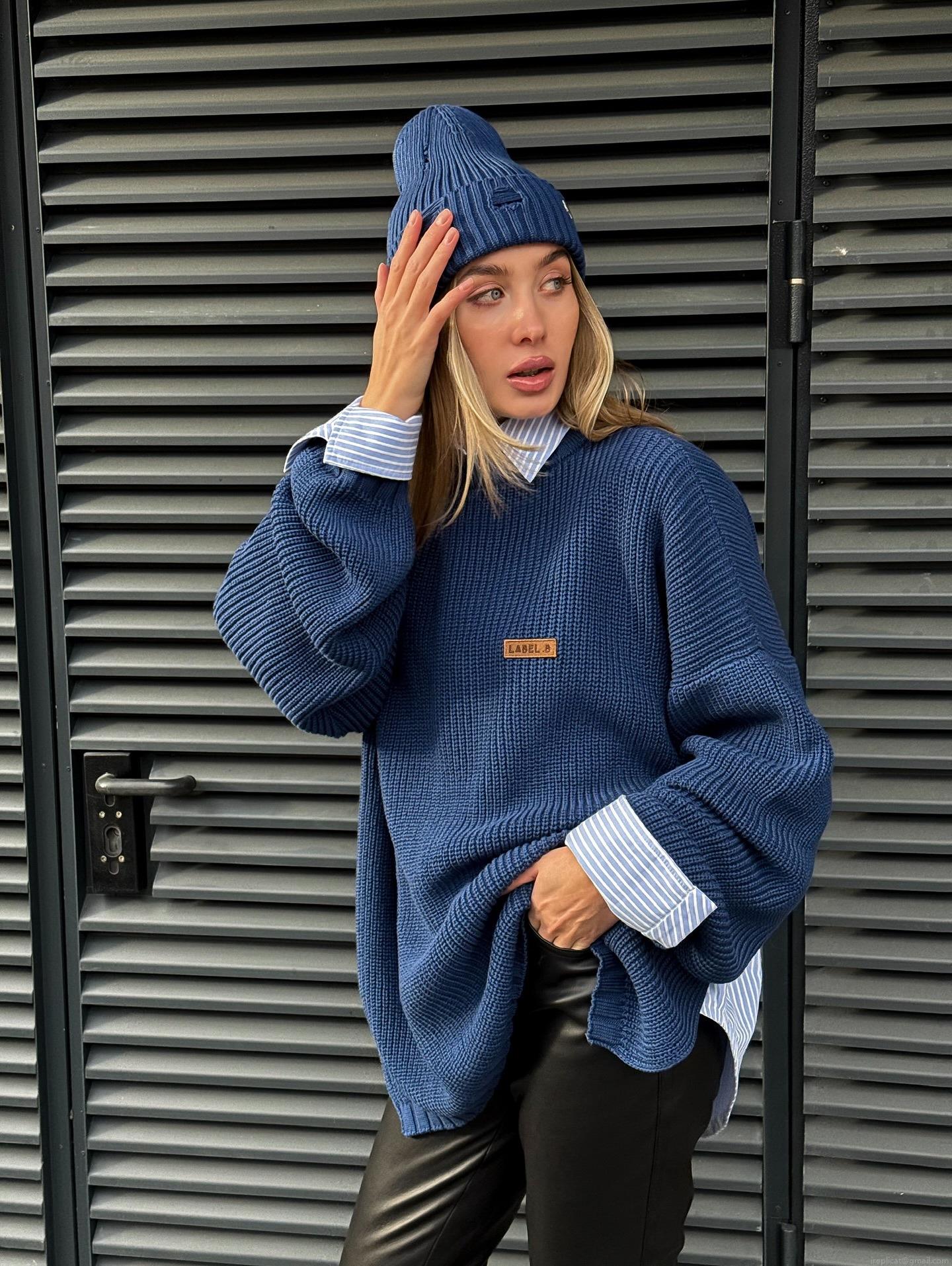 • Women's Oversized Knit Pullover Sweater Patchwork Striped Hem Backless Streetwear Acrylic Polyester Long Sleeve Casual Loose Fit Knitwear Top