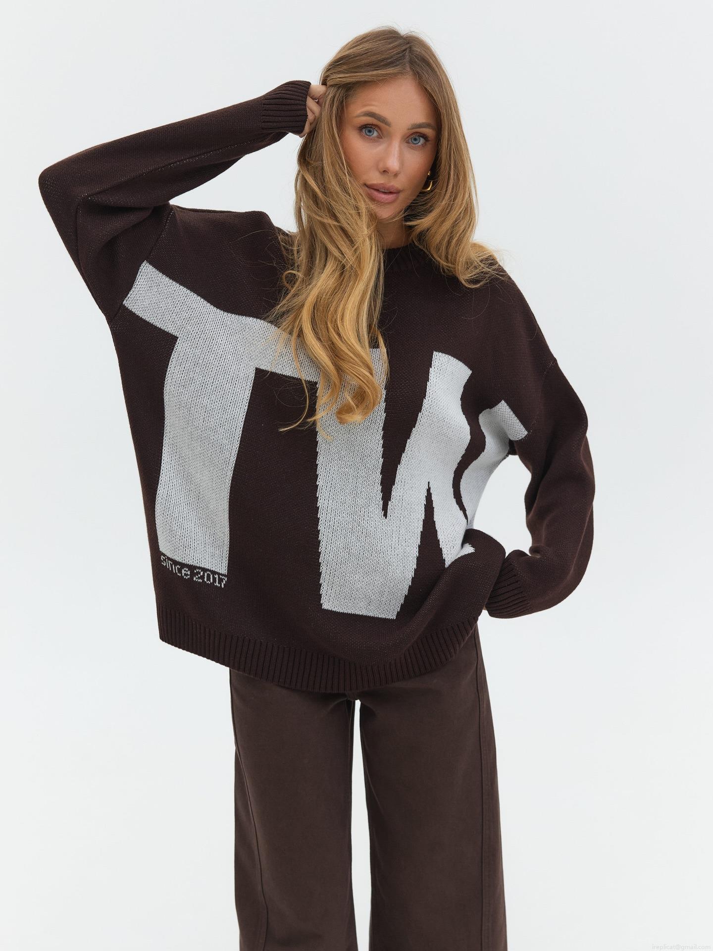 • Women's Oversized Knit Sweater 80% Cotton Letter Jacquard Round Neck Long Sleeve Pullover Loose Casual Streetwear Top For Spring Autumn