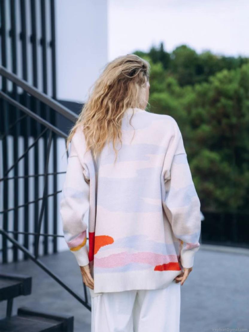 • Women's Oversized Knit Sweater Cotton Blend Coconut Tree Jacquard Pullover Contrast Color Long Sleeve Crewneck Jumper Lazy Style Autumn Winter Fashion Tops