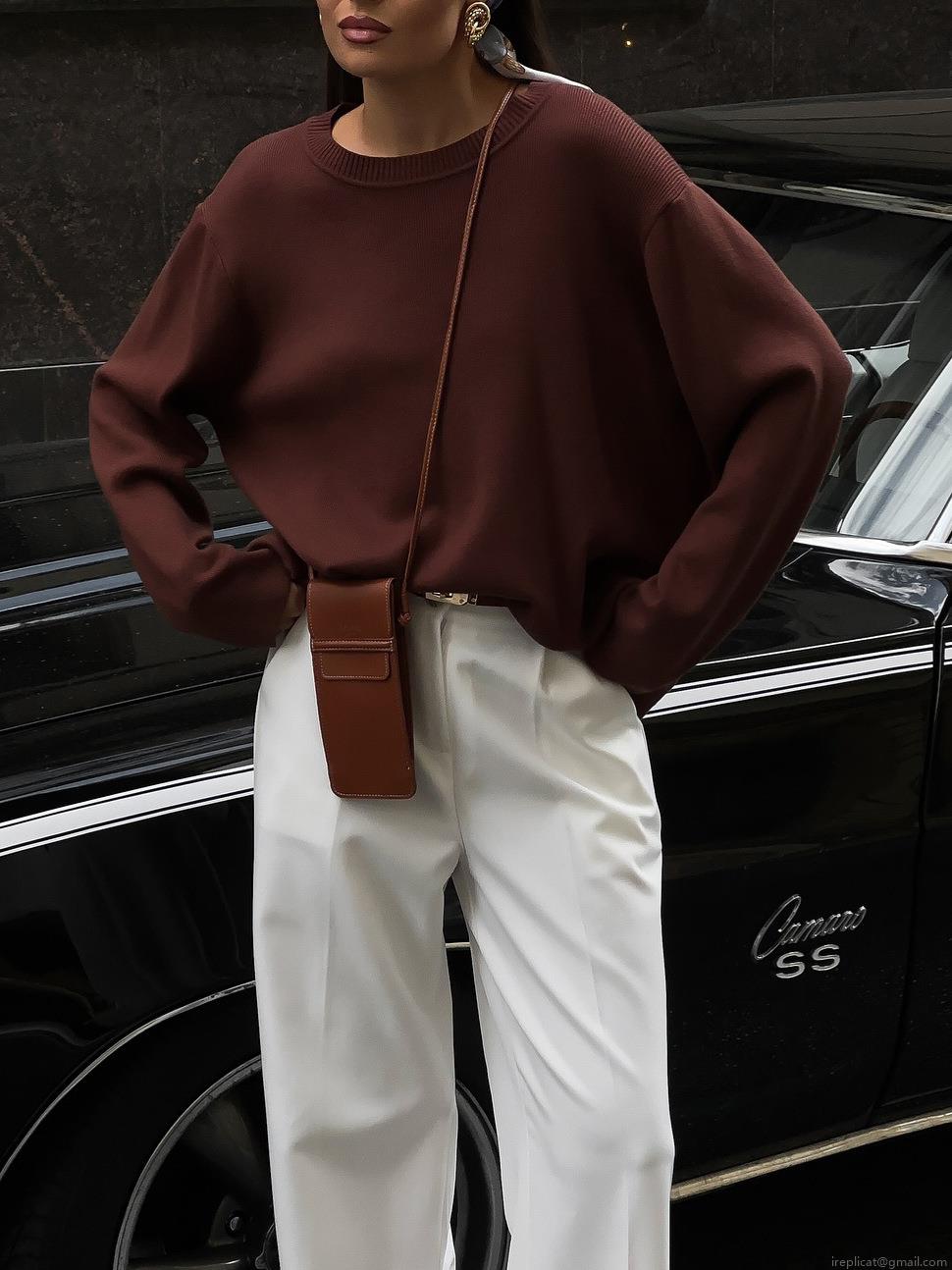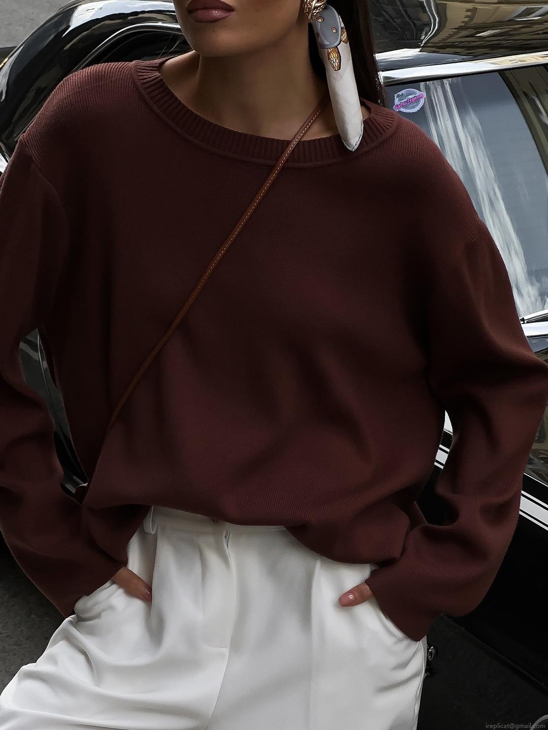 Solid Color, Crew Neck, Loose Fit, Knitted Texture