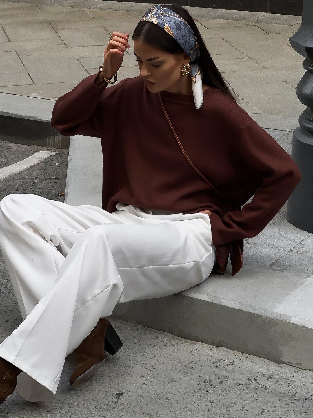 • Women's Oversized Knit Sweater Round Neck Long Sleeve Solid Color Pullover Casual Streetwear Loose Cotton Blend Jumper Retro Knitted Tops For Autumn Winter