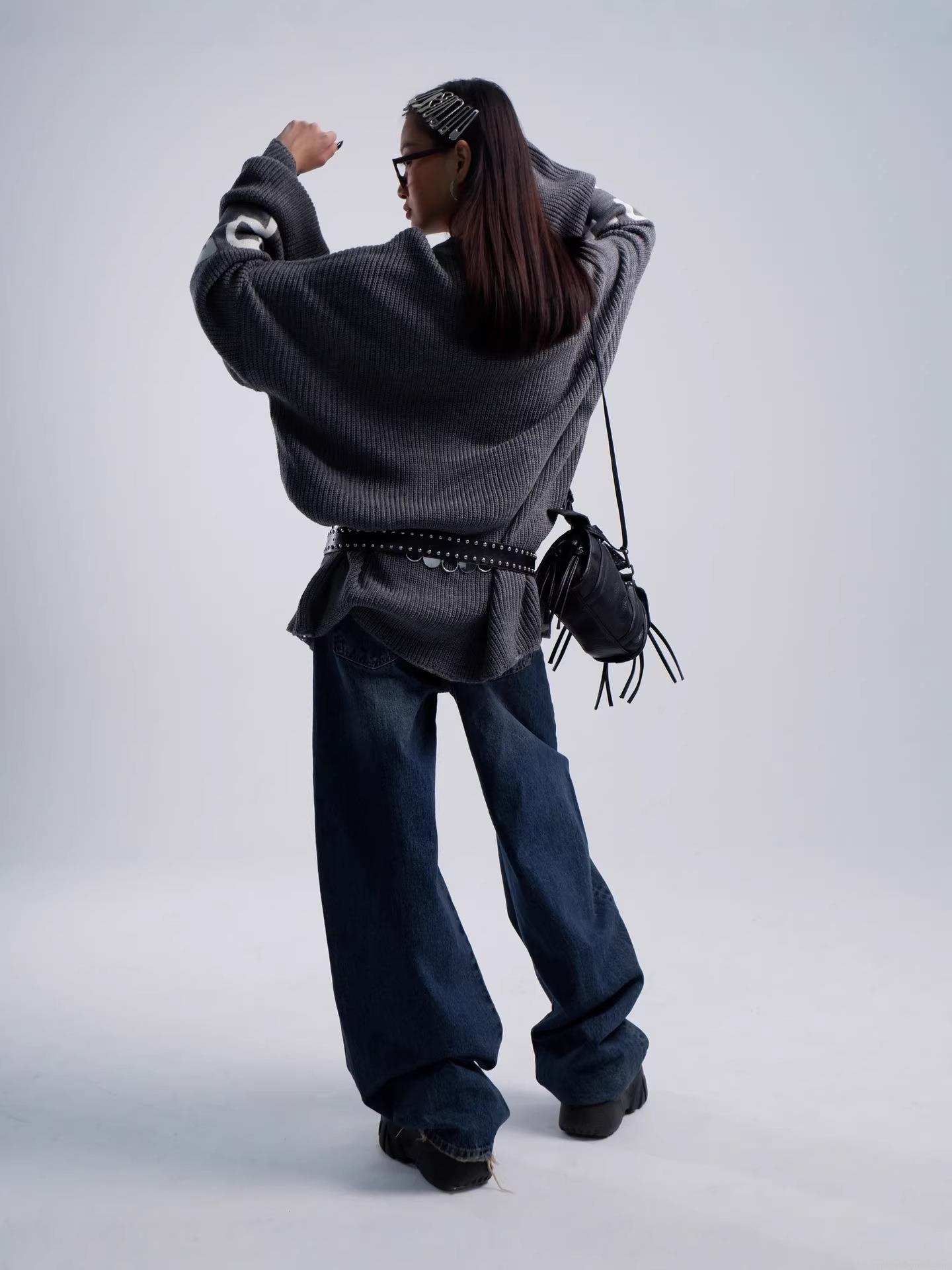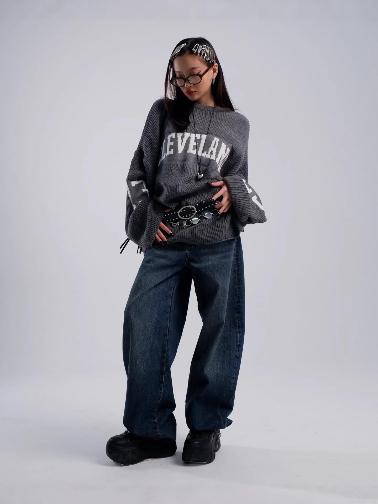 • Women's Oversized Knitted Sweater Cleveland Letter Jacquard Cotton Blend Soft Warm Loose Fit Streetwear Y2K Casual Vintage Autumn Winter Pullover Tops
