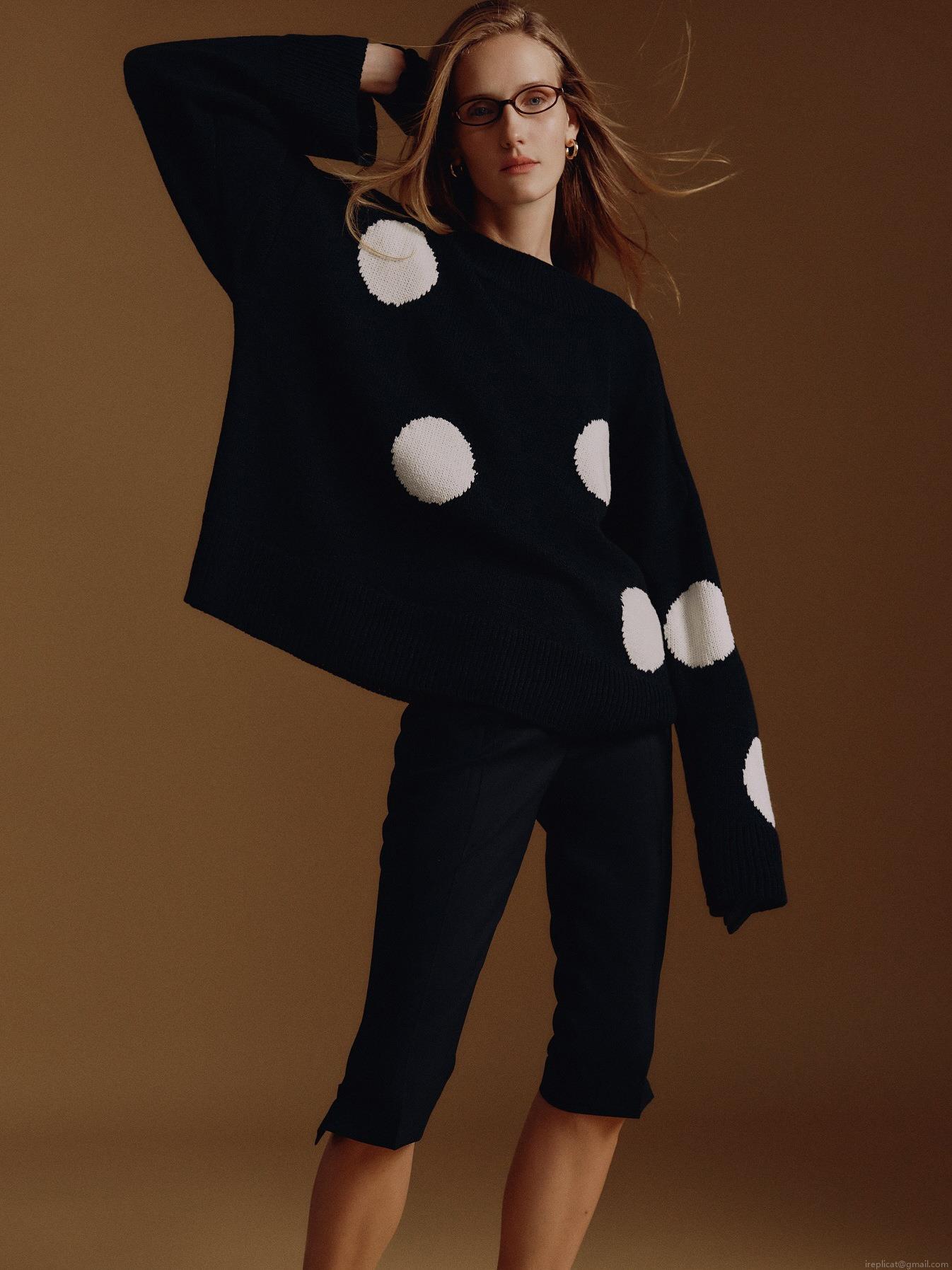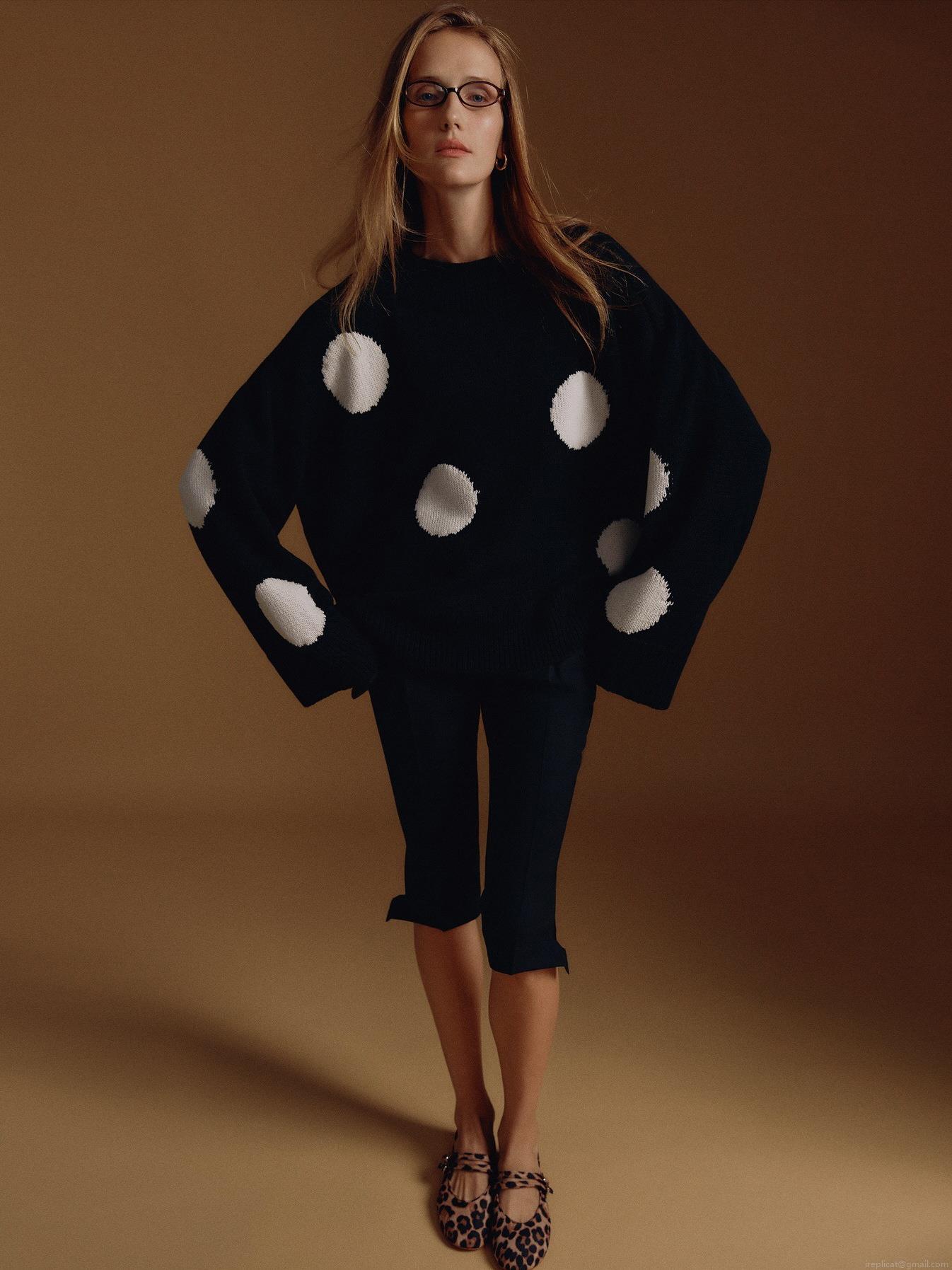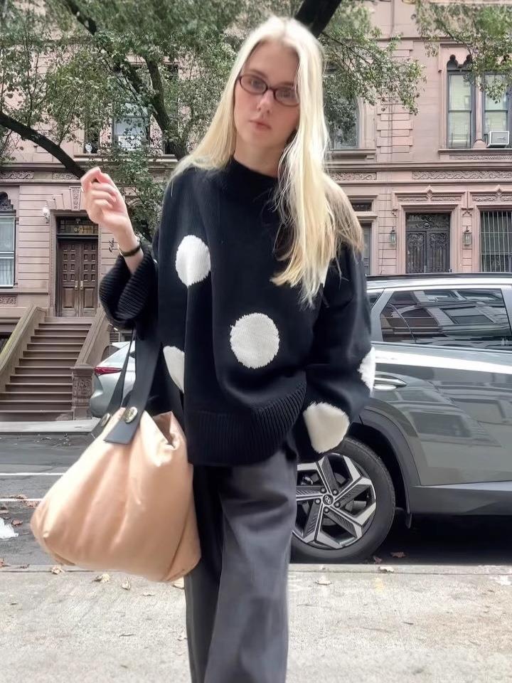 • Women's Oversized Polka Dot Knitted Sweater Acrylic Cotton Blend Round Neck Long Sleeve Pullover Soft Warm Jumper Retro Streetwear Autumn Winter Casual Knitwear Top