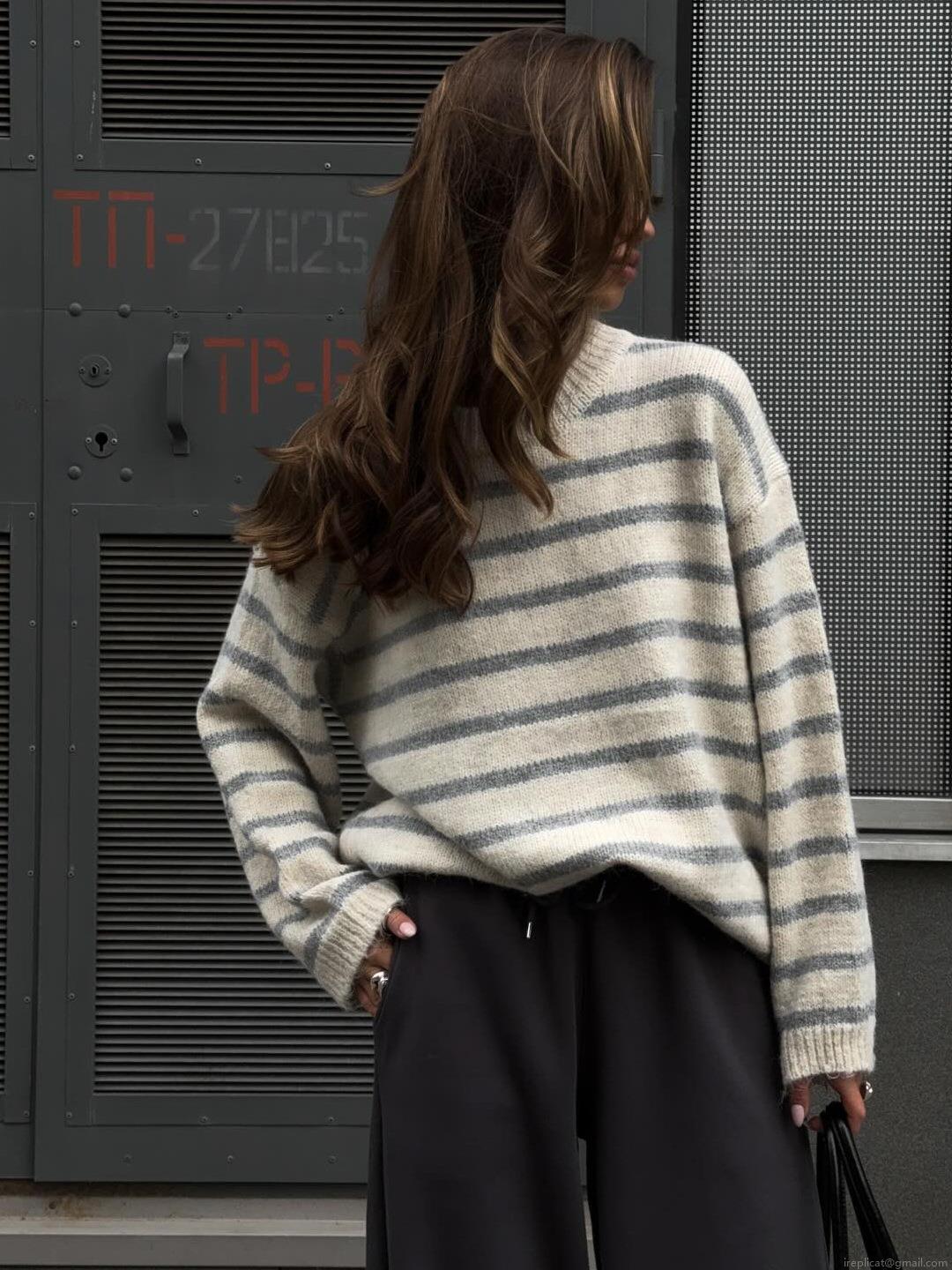 • Women's Oversized Striped Knit Sweater Cotton Viscose Blend Loose Pullover Crewneck Long Sleeve Jumper Top Casual Streetwear For Spring Autumn Wear